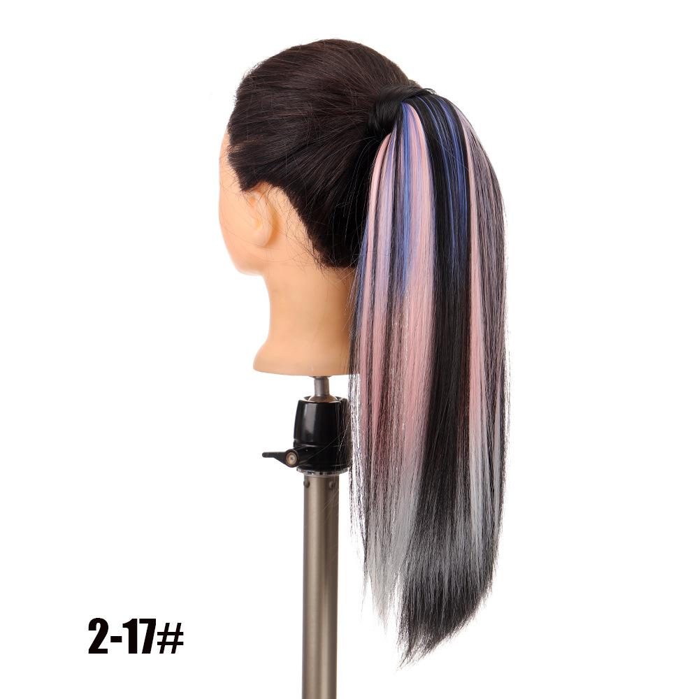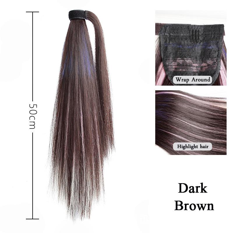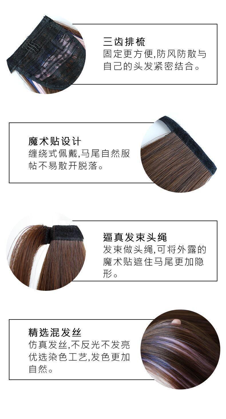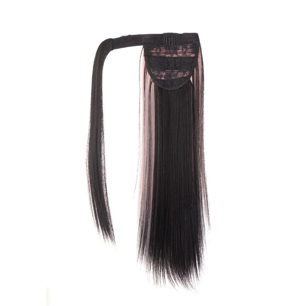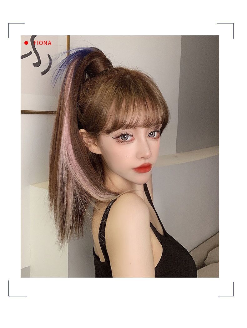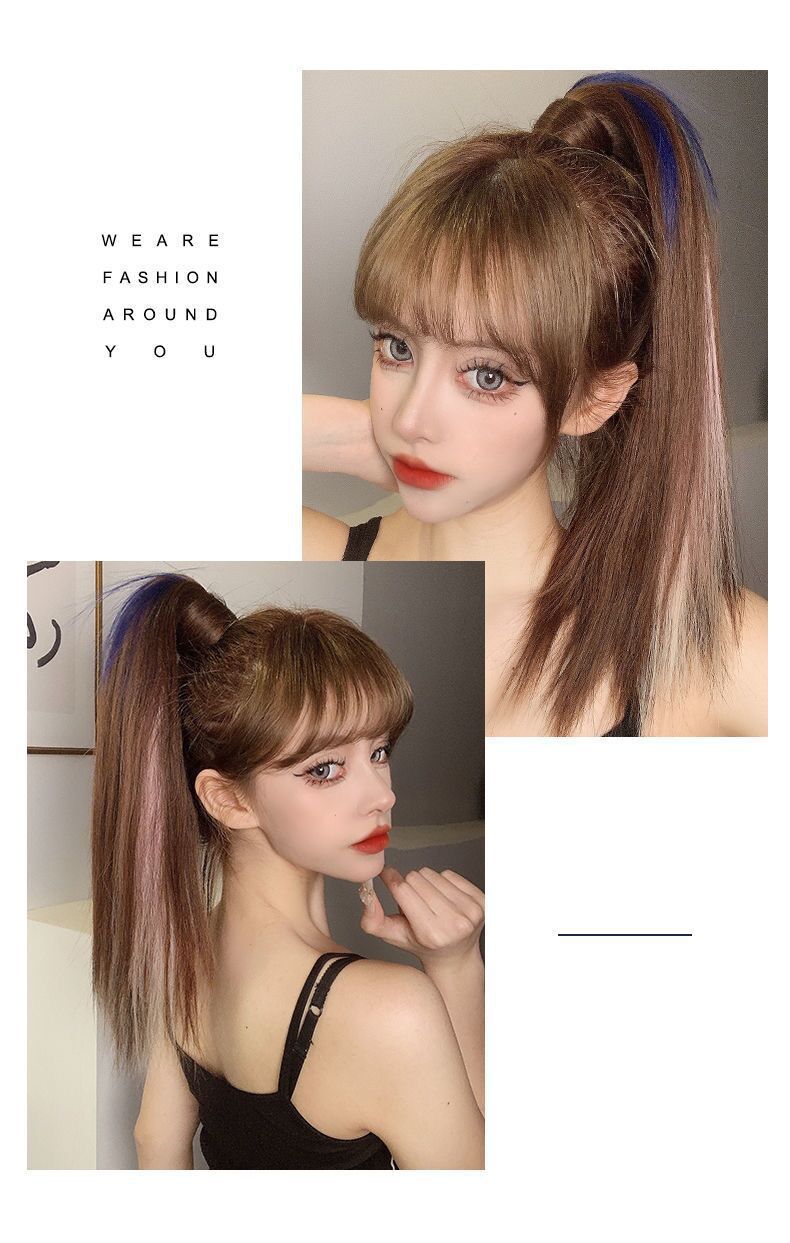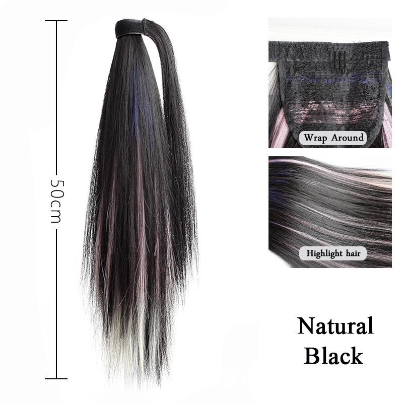 Peruca Rabo de Cavalo Feminino Velcro Fantasma Colorido Manchado Tintura Cabelo Médio-Longo Laço Imitação Natural Cyber Celebrando Rabo de Cavalo Falso Maré