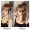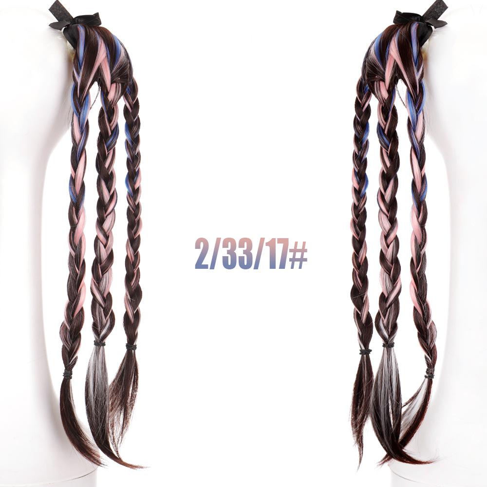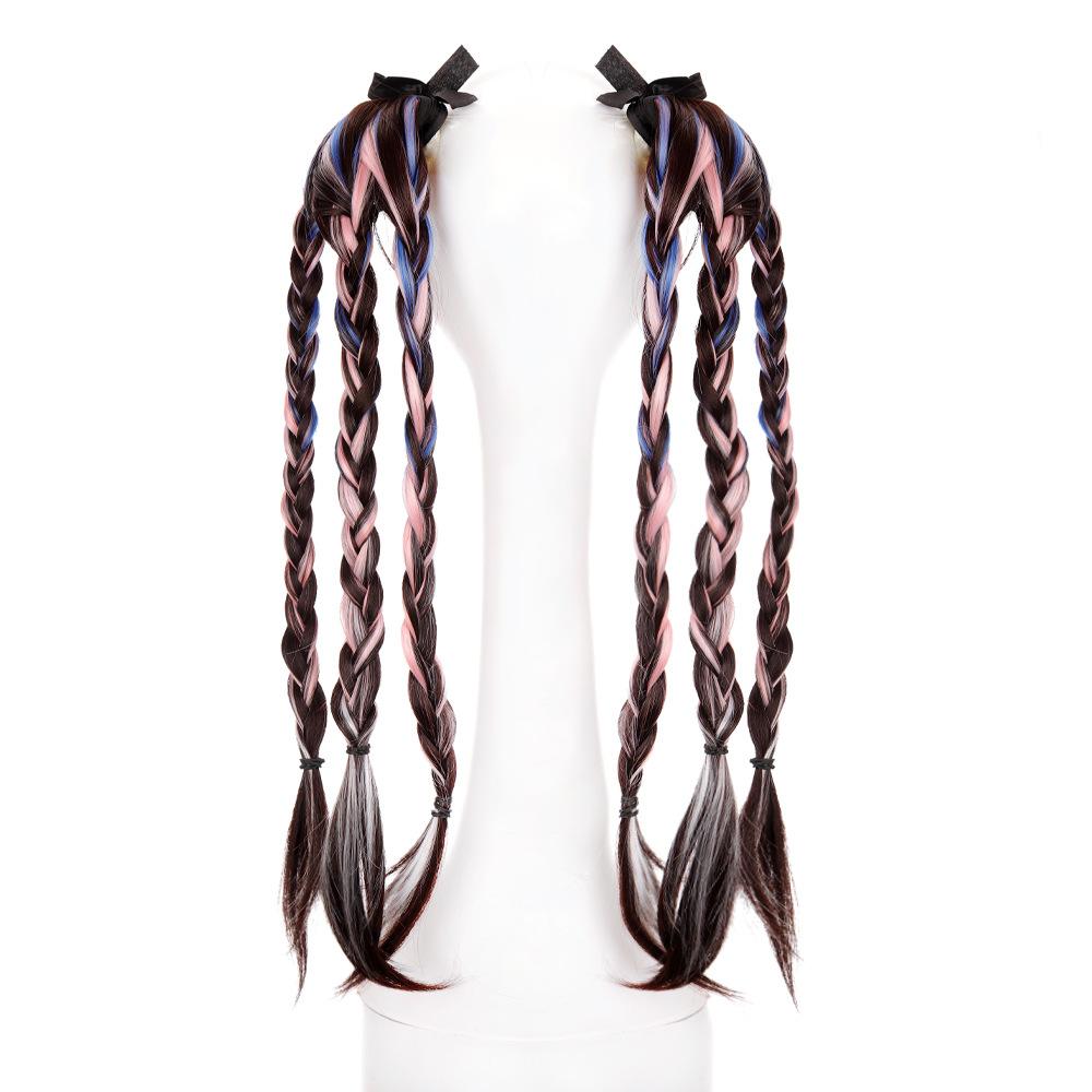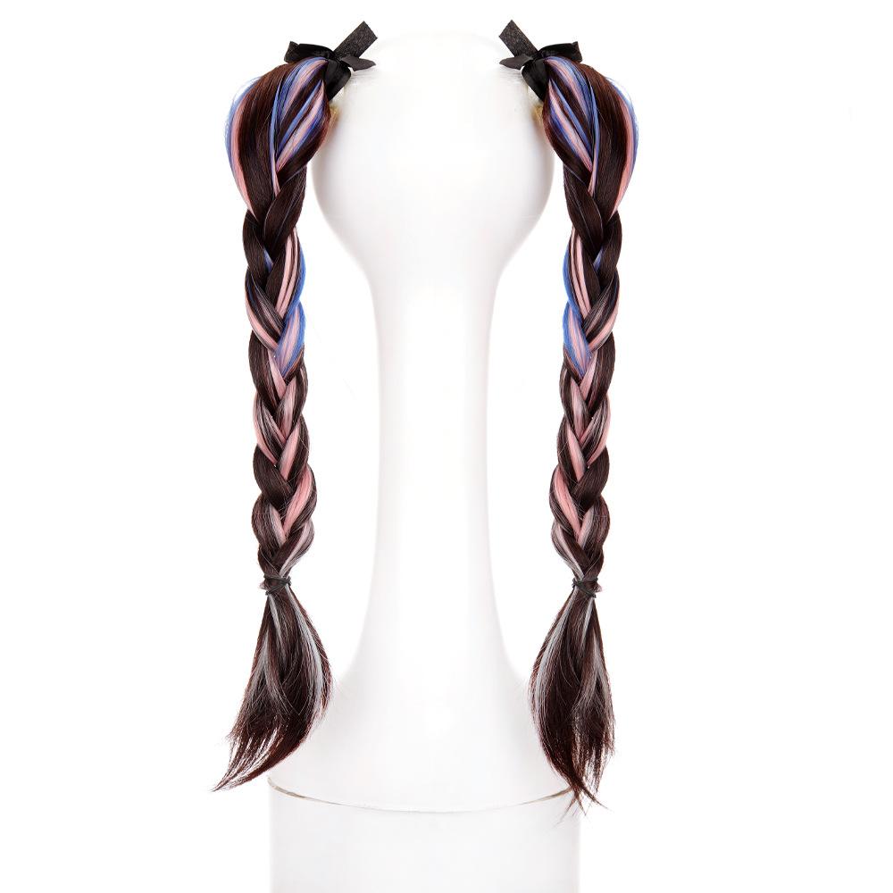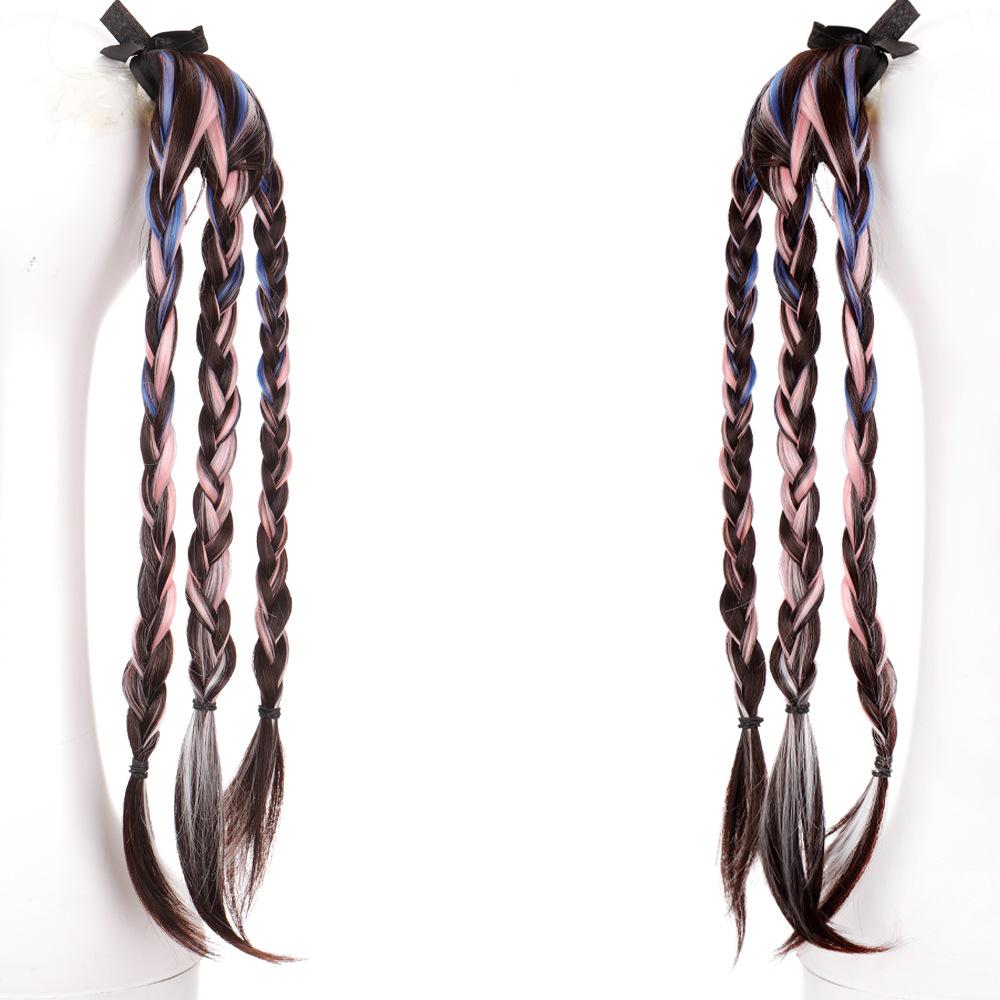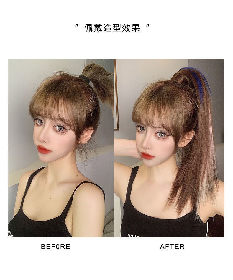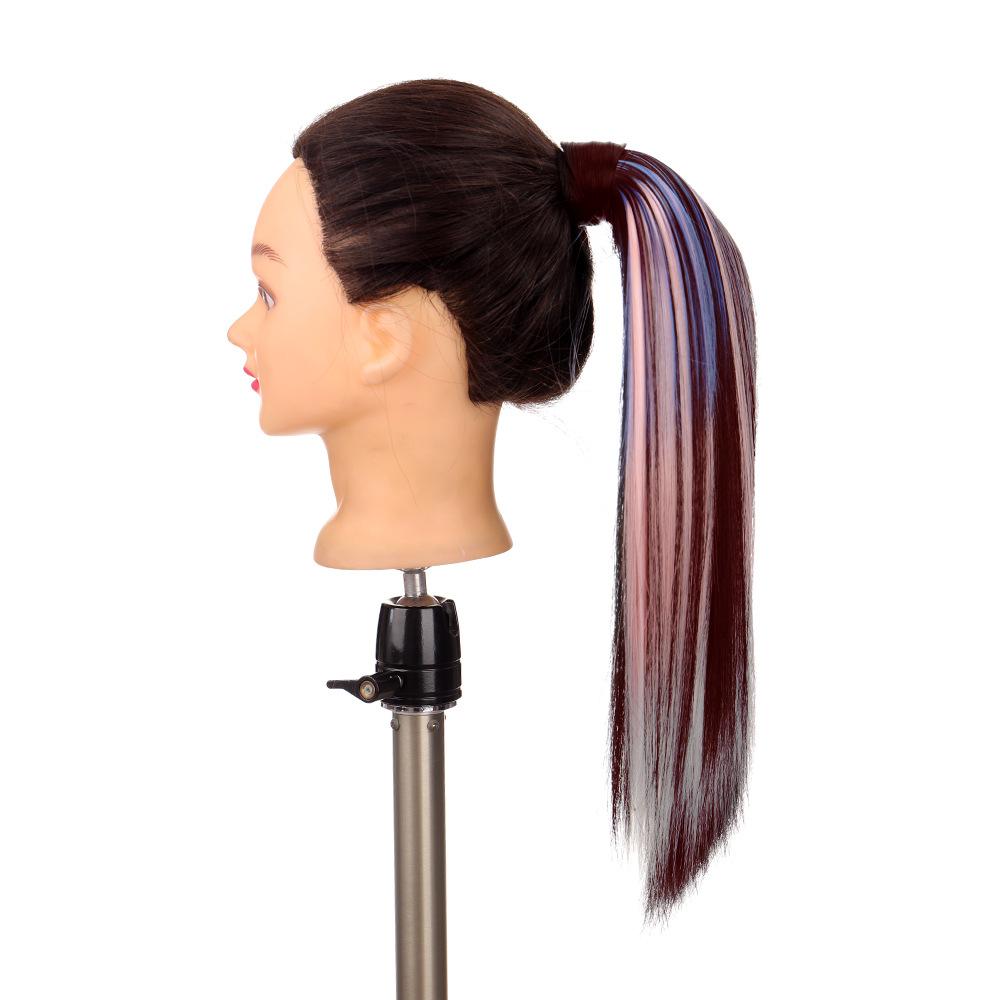 Peruca Rabo de Cavalo Feminino Velcro Fantasma Colorido Manchado Tintura Cabelo Médio-Longo Laço Imitação Natural Cyber Celebrando Rabo de Cavalo Falso Maré