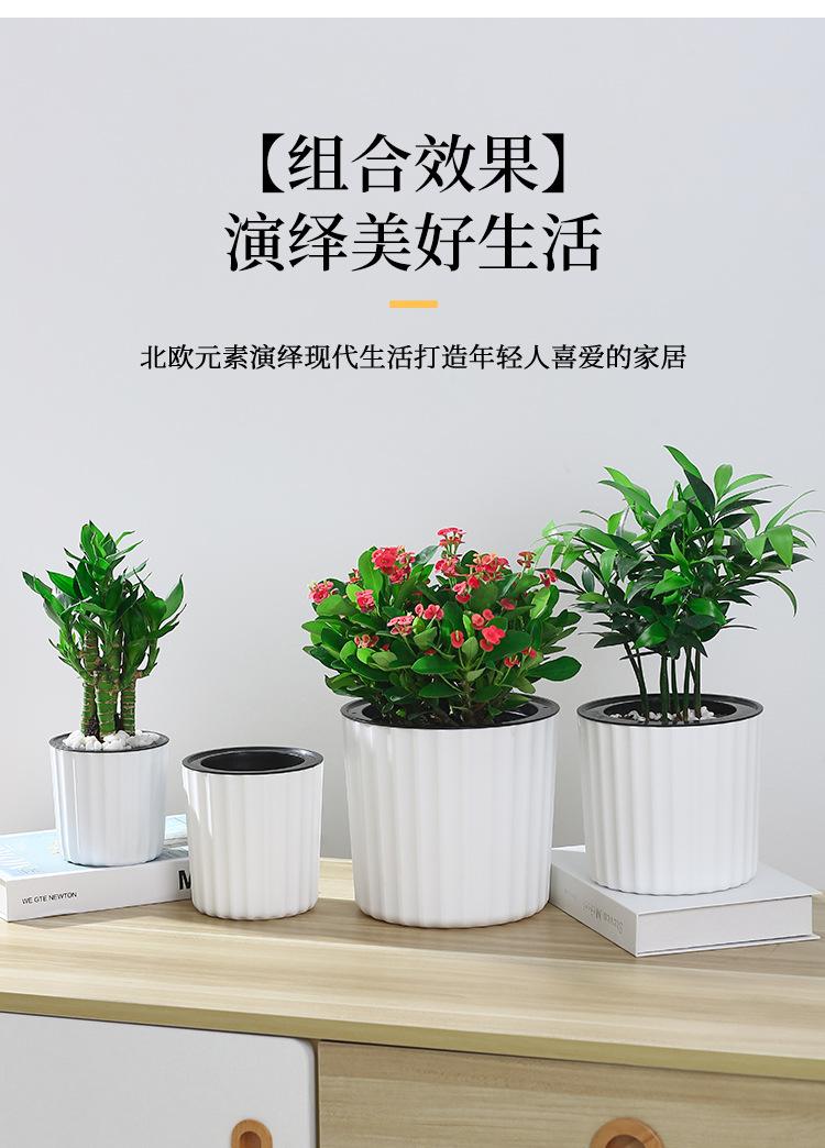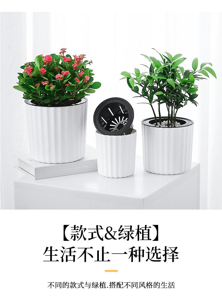 Vaso de flores nórdico branco, simples, autoabsorvente, preguiçoso, varanda, escritório, plantio verde, redondo, vaso de resina para plantio