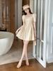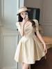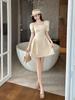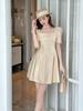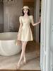 2025 Novo Vestido Feminino de Verão Francês Decote Quadrado Cintura Bufante Socialite Petite Saia A-Line 212955