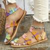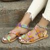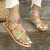 2023 Primavera Novos sapatos femininos plus size comércio exterior flat toe aberto borla colorida estilo étnico sandálias respiráveis