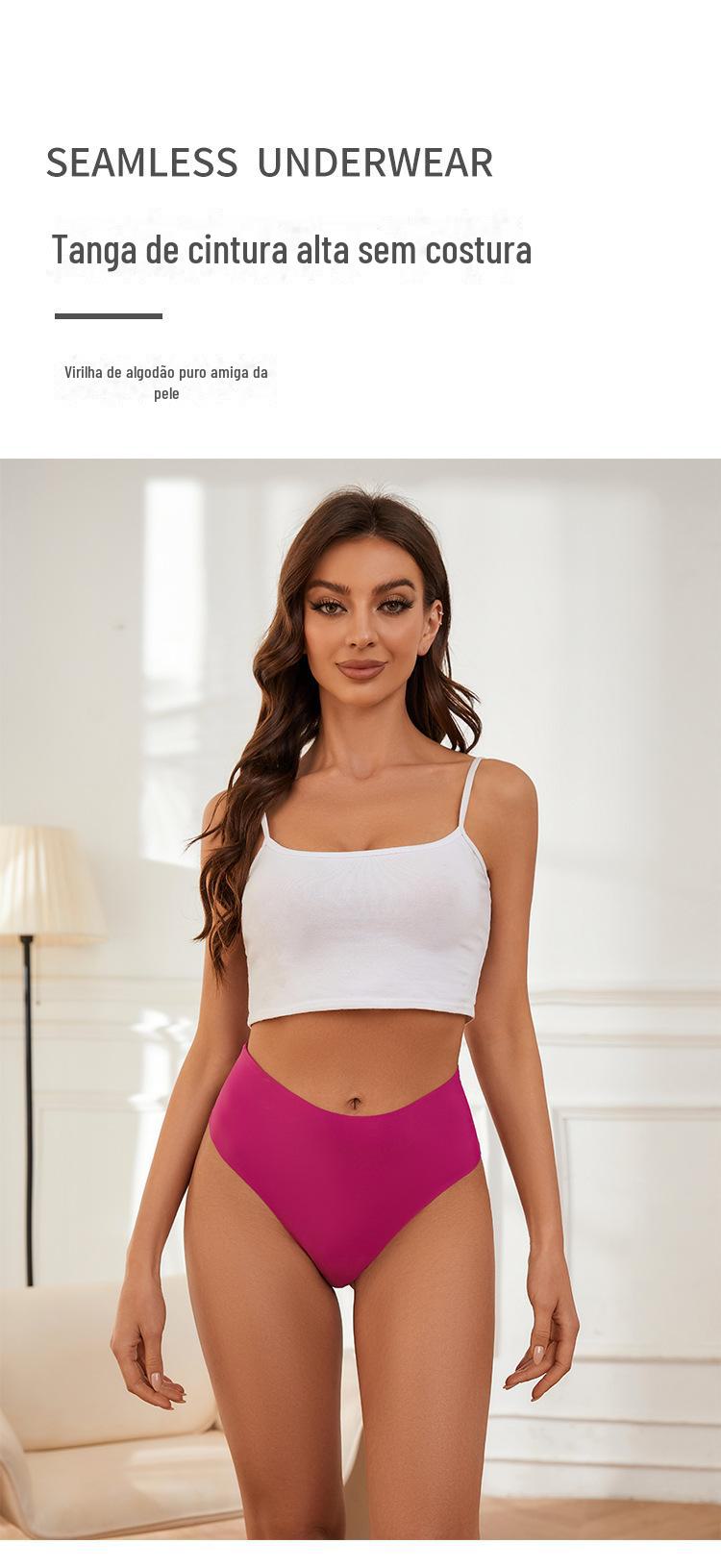 Amazon Europeu e Americano das mulheres sexy cintura alta biquíni tanga uma peça em forma de T gelo Seda plus size cueca sem costura