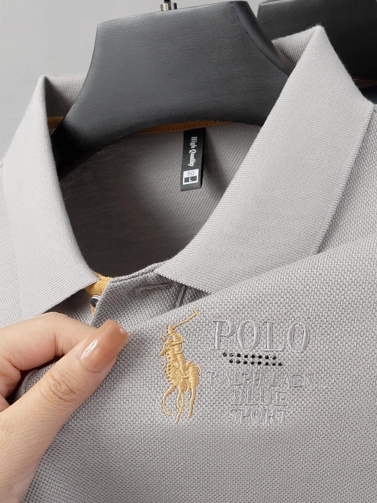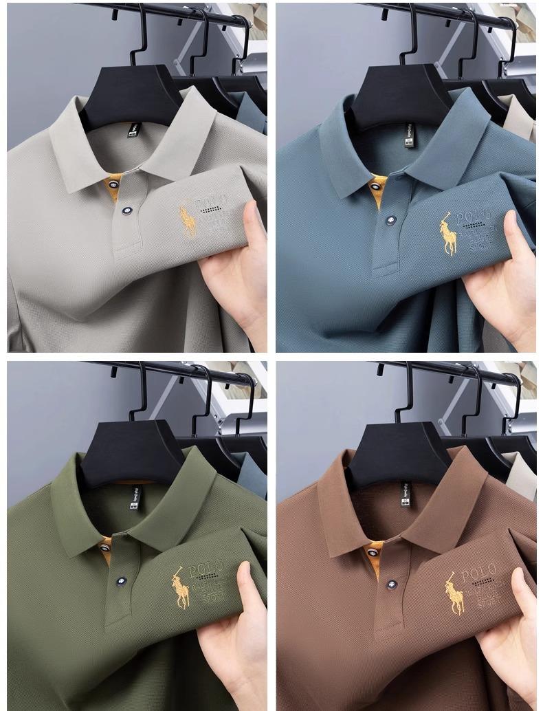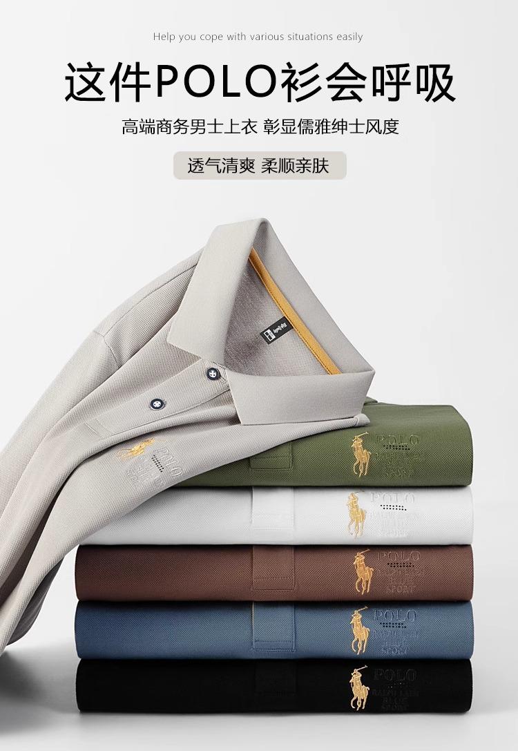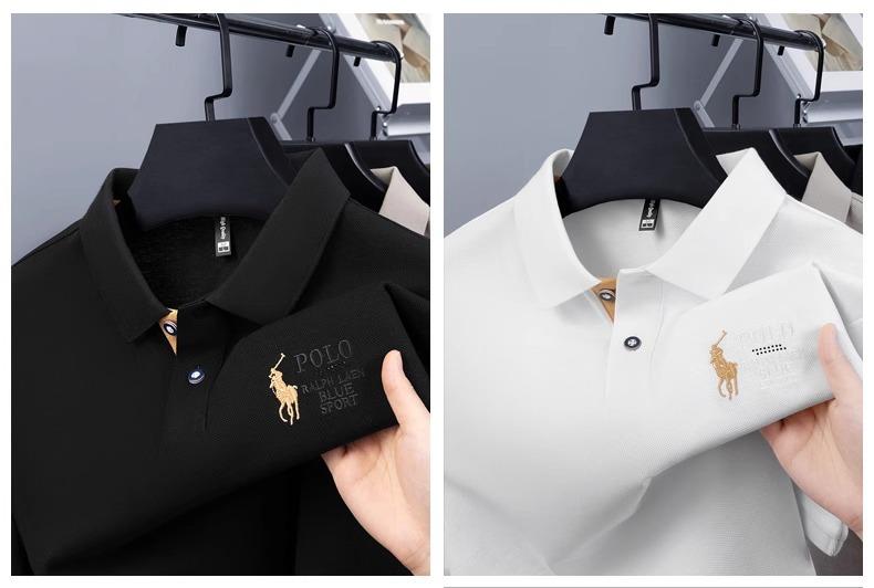 Verão Novo Polo Bordado de Alta Qualidade Masculino Manga Curta Verão Casual Business Casual Gola Algodão Manga Curta