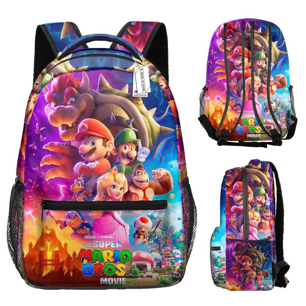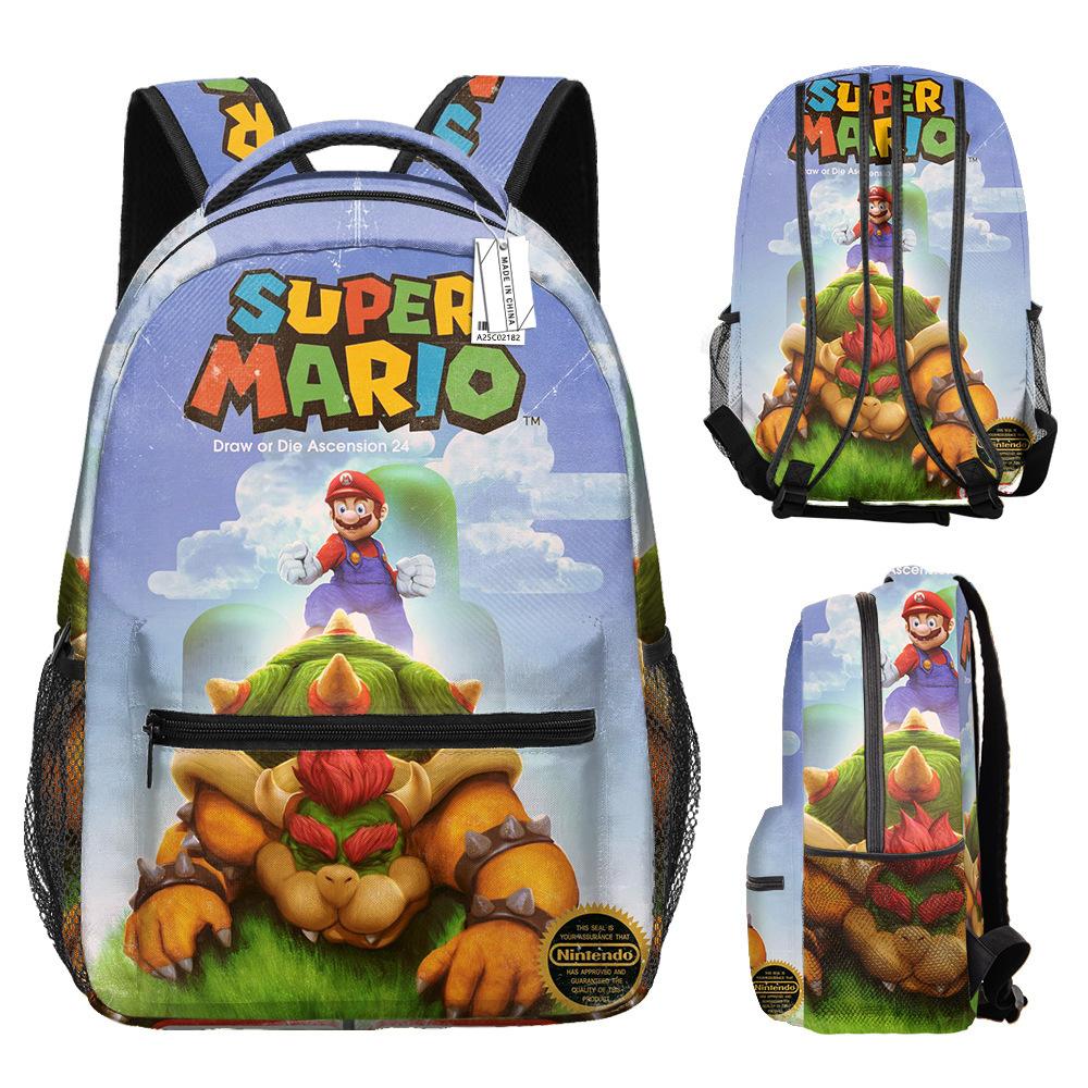 Europeu e Americano Hot Mario Cartoon Mochila Mochila para Alunos do Ensino Fundamental e Médio Impressão Digital 3D Mochila de Pano Oxford de Grande Capacidade