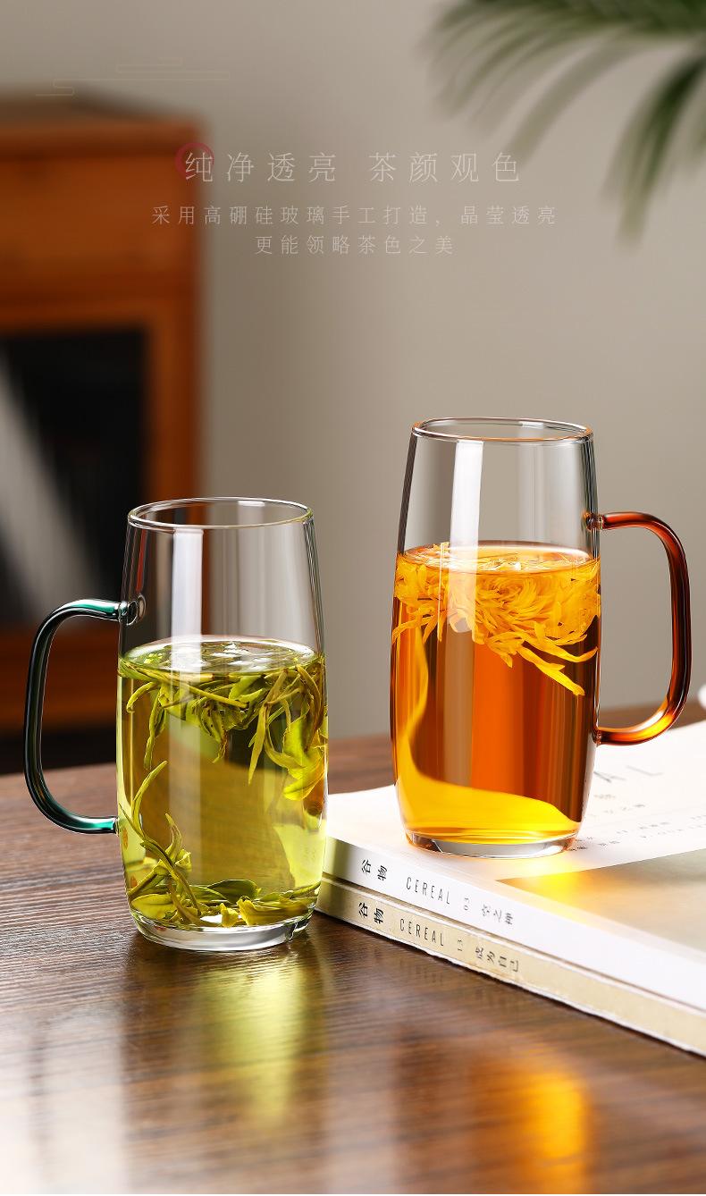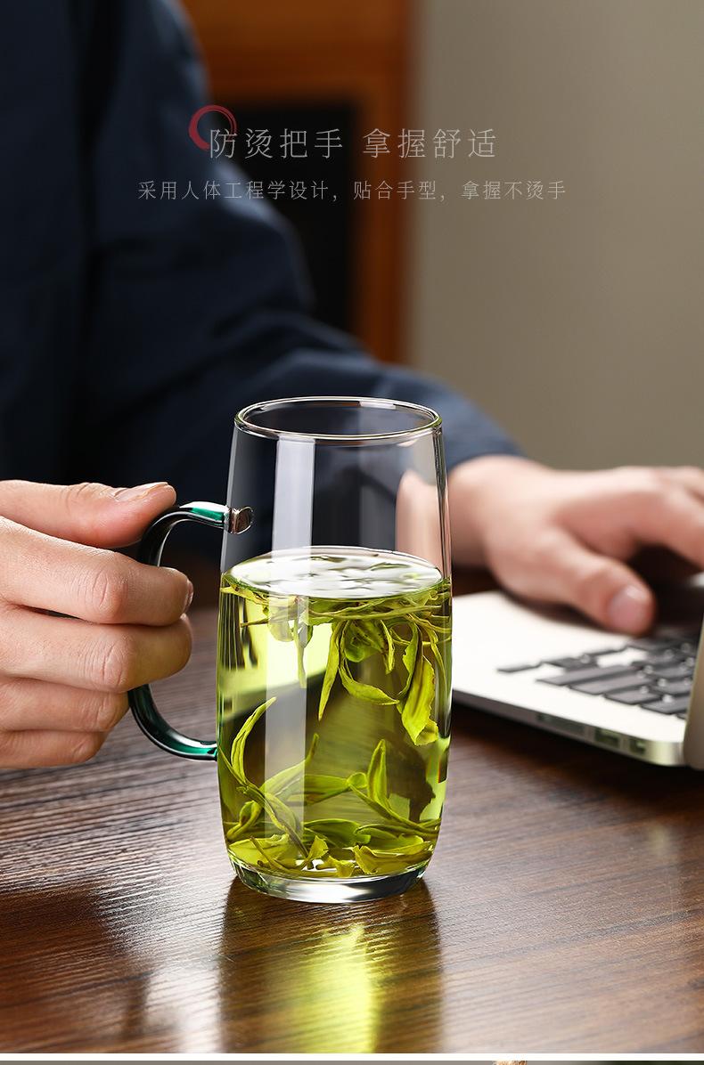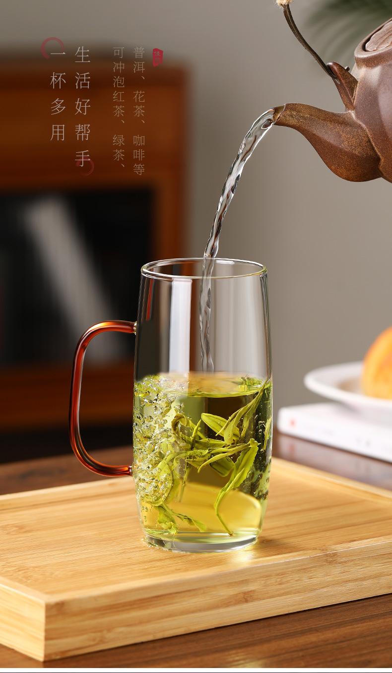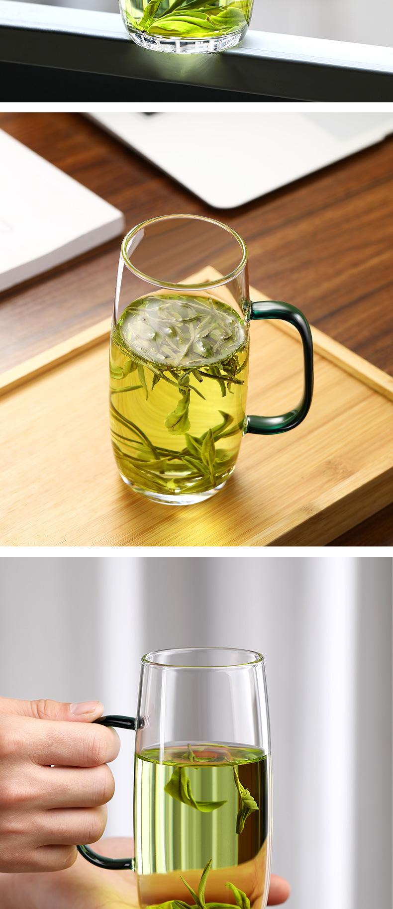 Copo de chá transparente doméstico de vidro com alto teor de borosilicato, copo de água resistente a altas temperaturas, copo masculino para beber, xícara de chá verde para escritório