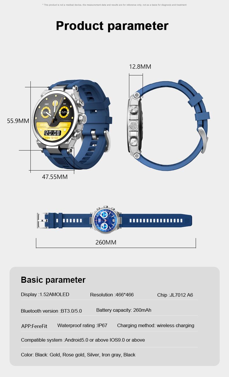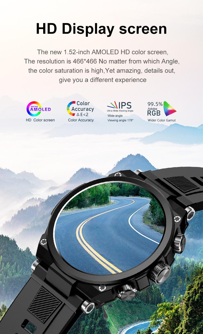 Tela AMOLED de 1,52 polegadas com resolução 466*466, chip Jerry 7012.