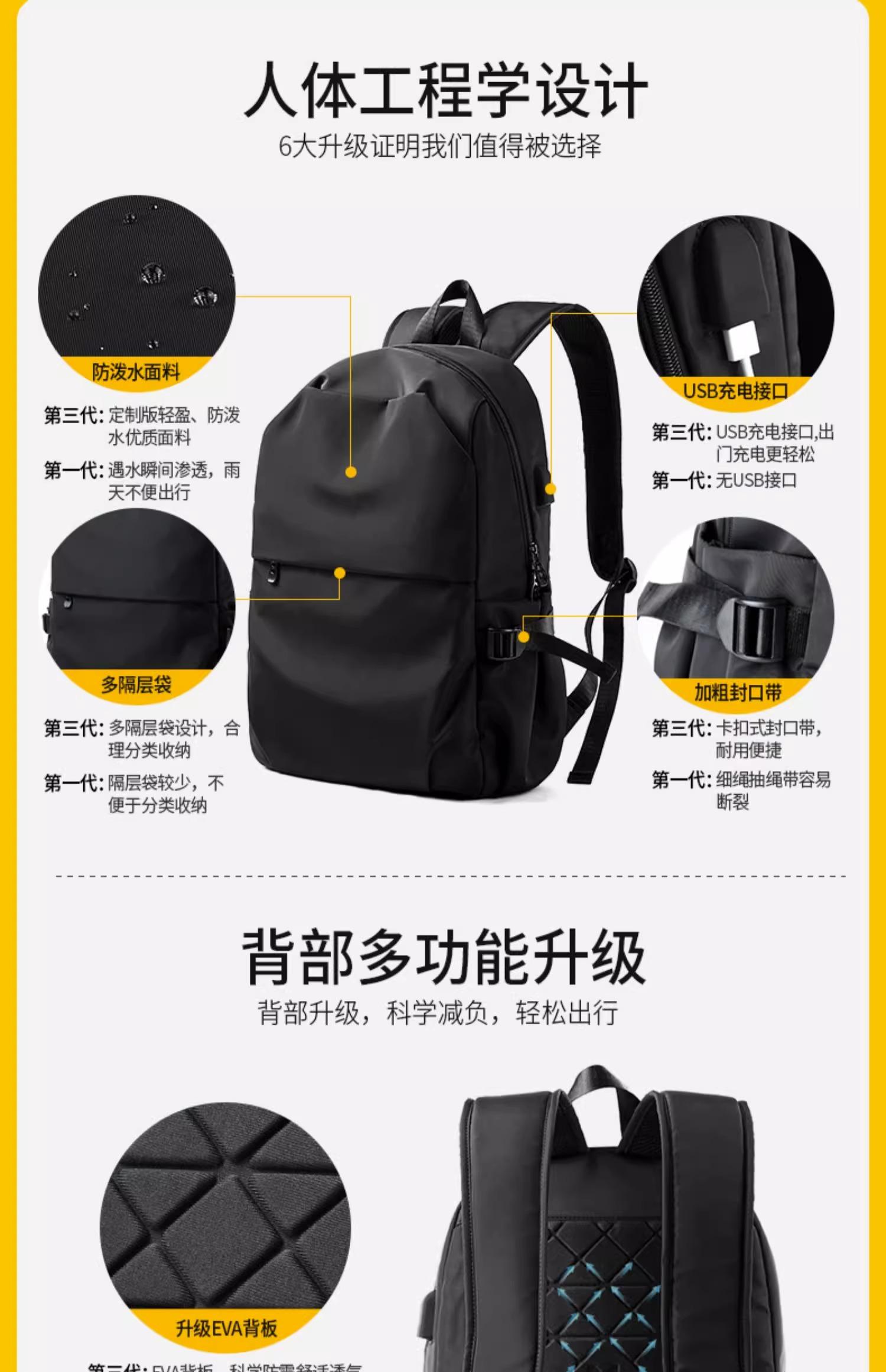 Mochila masculina Mochila casual Bolsa de viagem Bolsa de computador à prova d'água para viagem Mochila para estudante do ensino médio Mochila escolar para estudantes do ensino médio