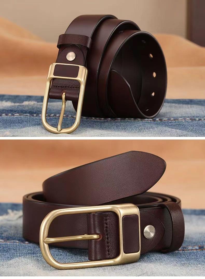Novo cinto masculino de fivela de pino de alta qualidade, couro de vaca puro, jeans simples, Joker, retrô, casual, calças, cinto em estoque, atacado