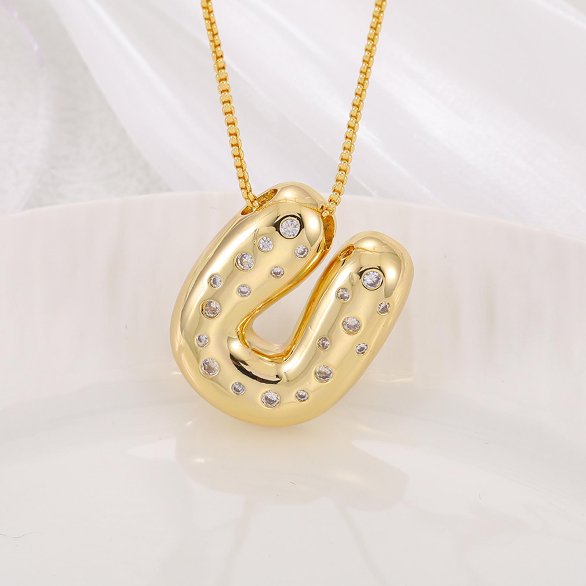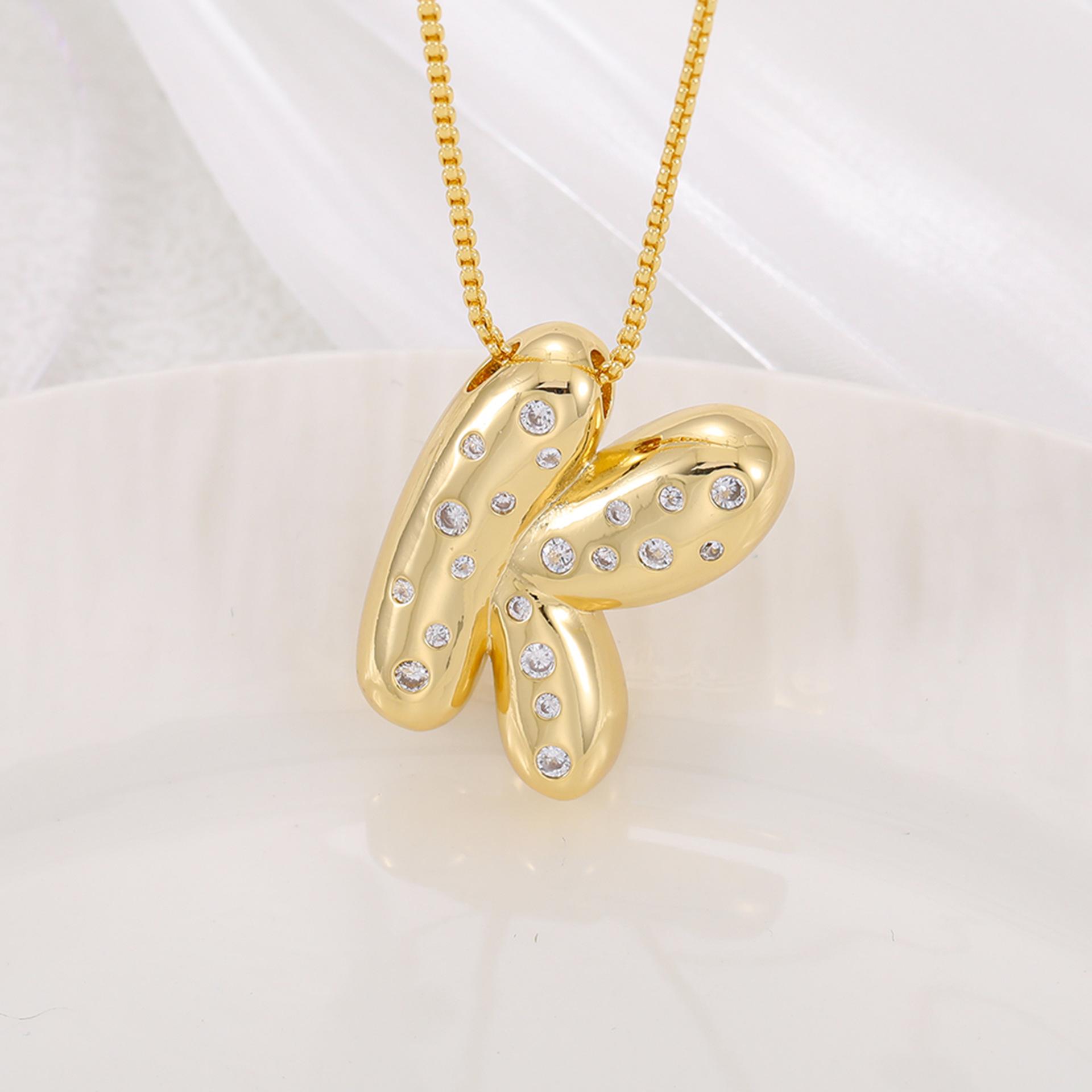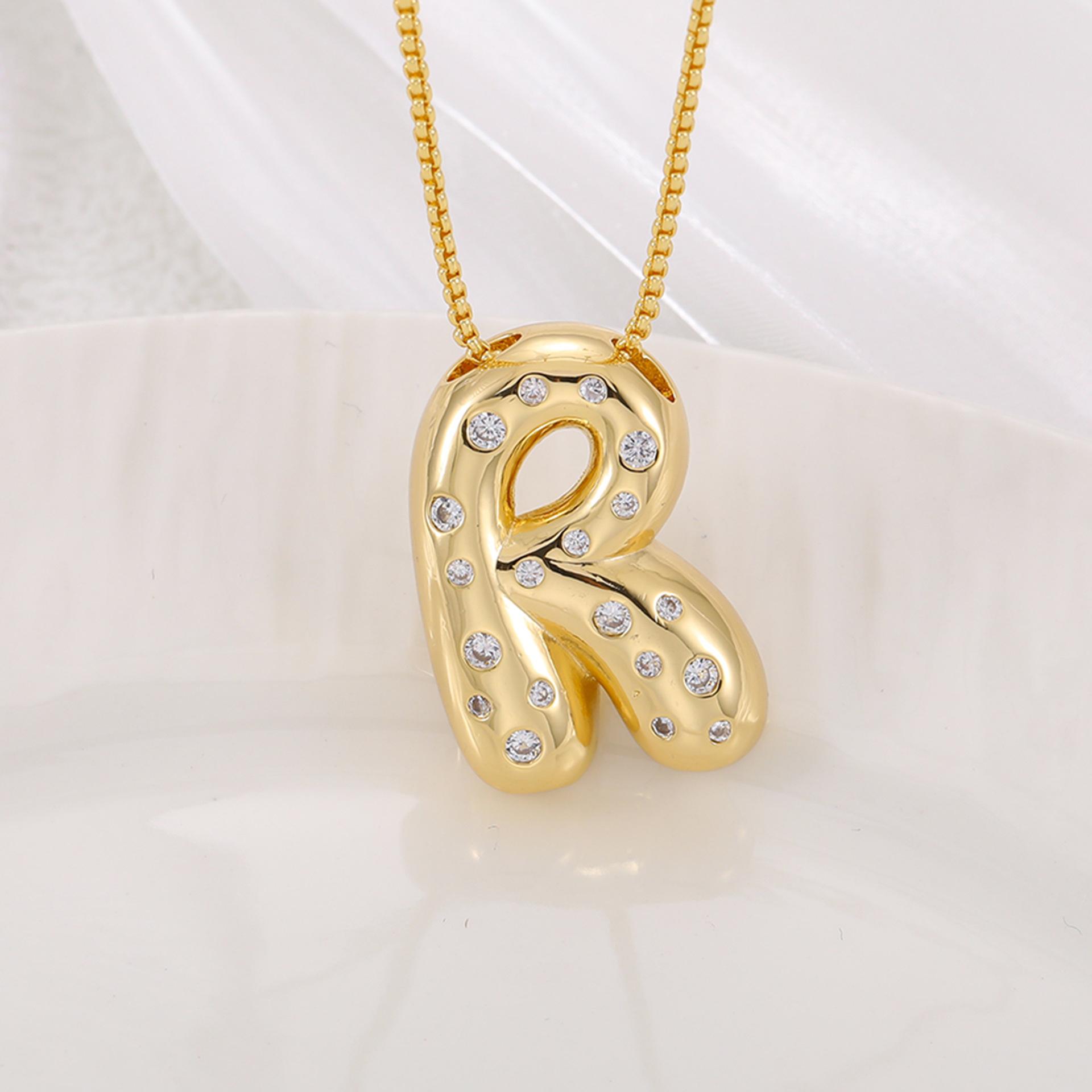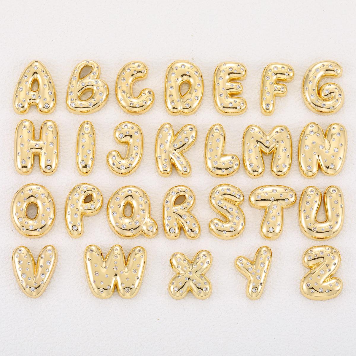 Novo Transfronteiriço Cobre Incrustado Zircônia Brilhante Gordinho 26 Pingente Letra Inglesa Ouro 18K Personalizado Colar Letra Grande