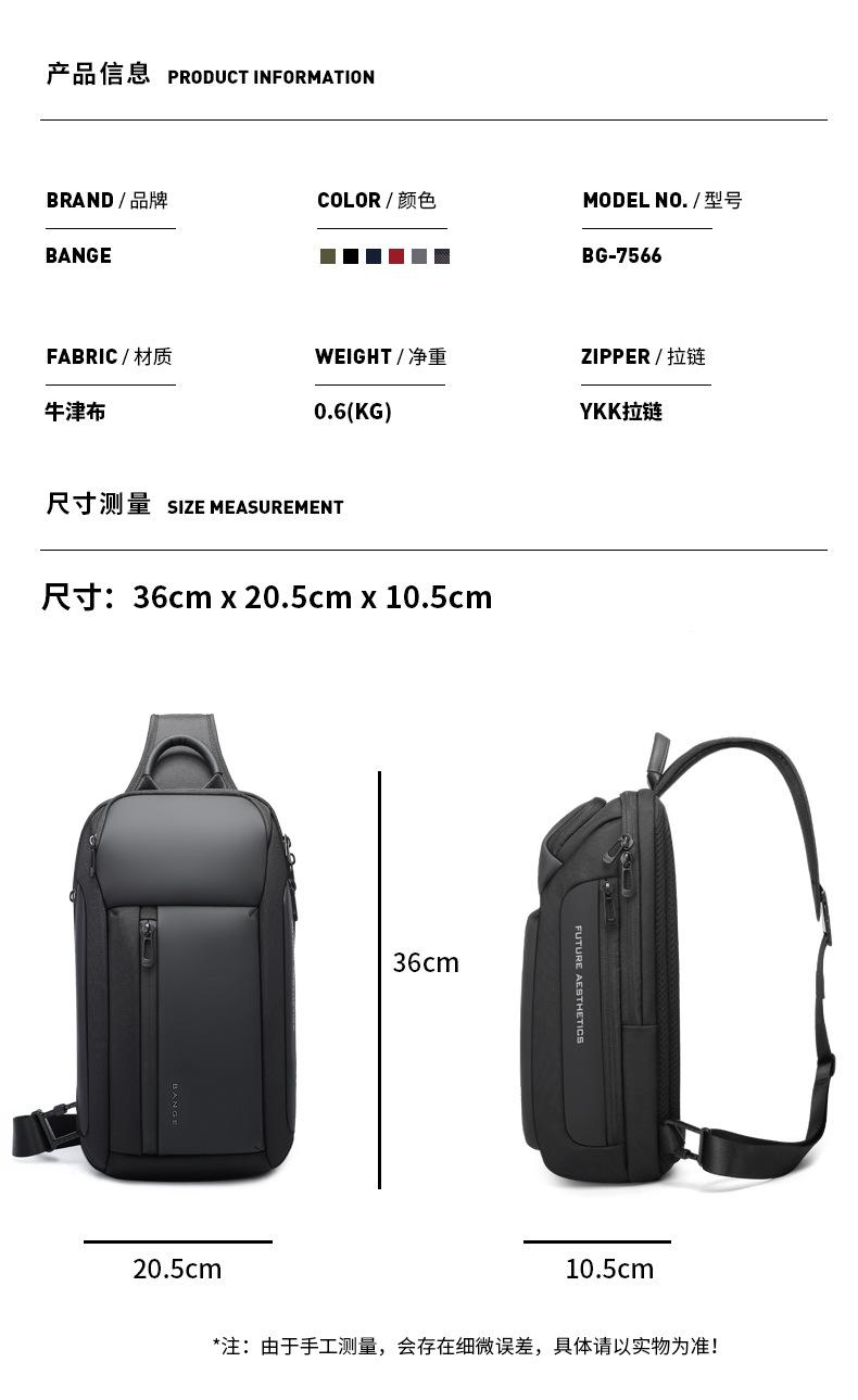 BANGE Crossbody Bag Bolsa de Peito Masculina Casual Moda Masculina Crossbody Bolsa Bolsa de Ombro Bolsa Masculina Transfronteiriça Atacado