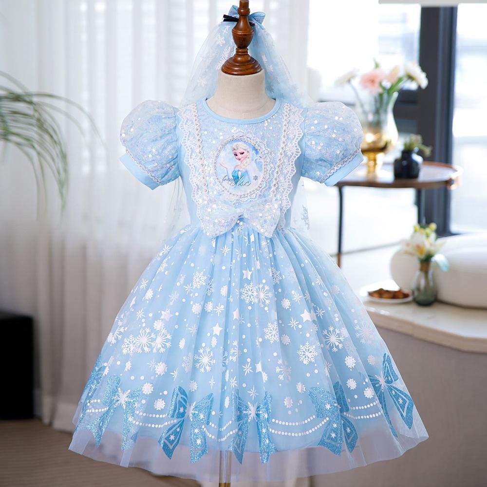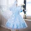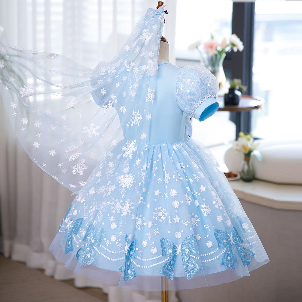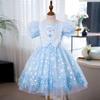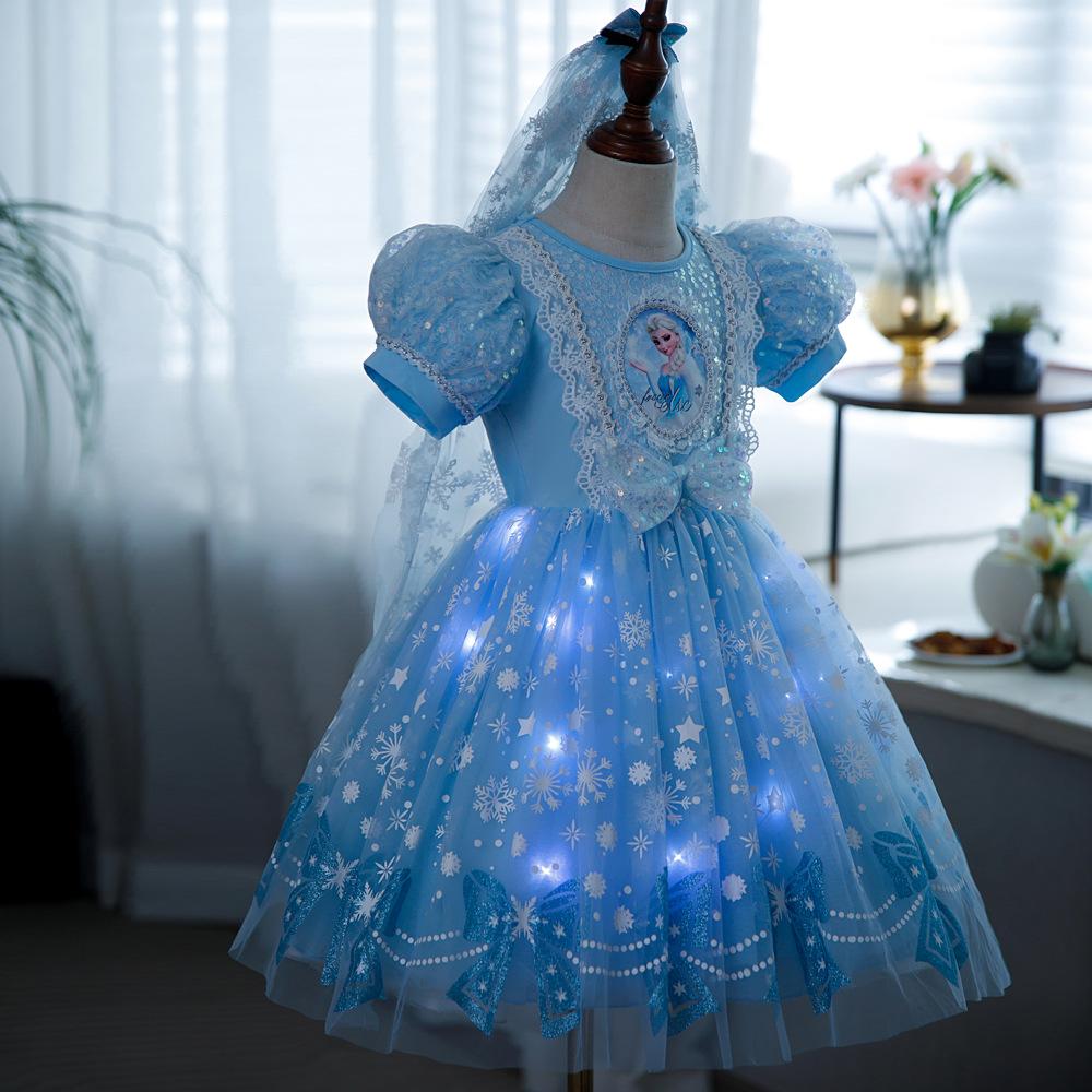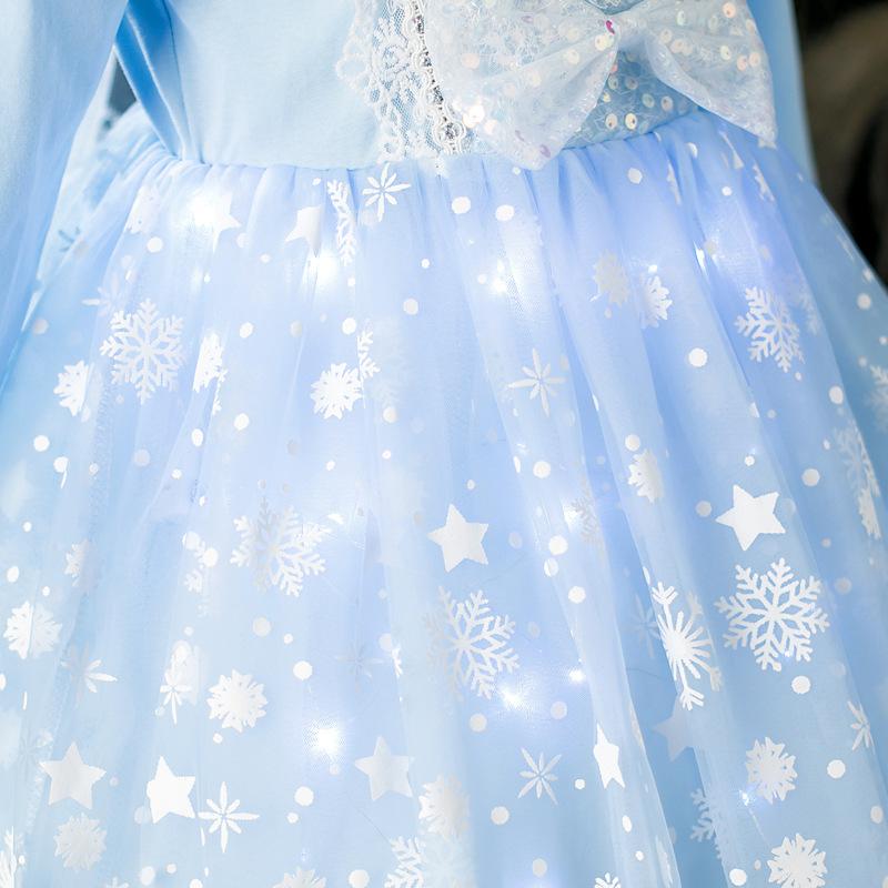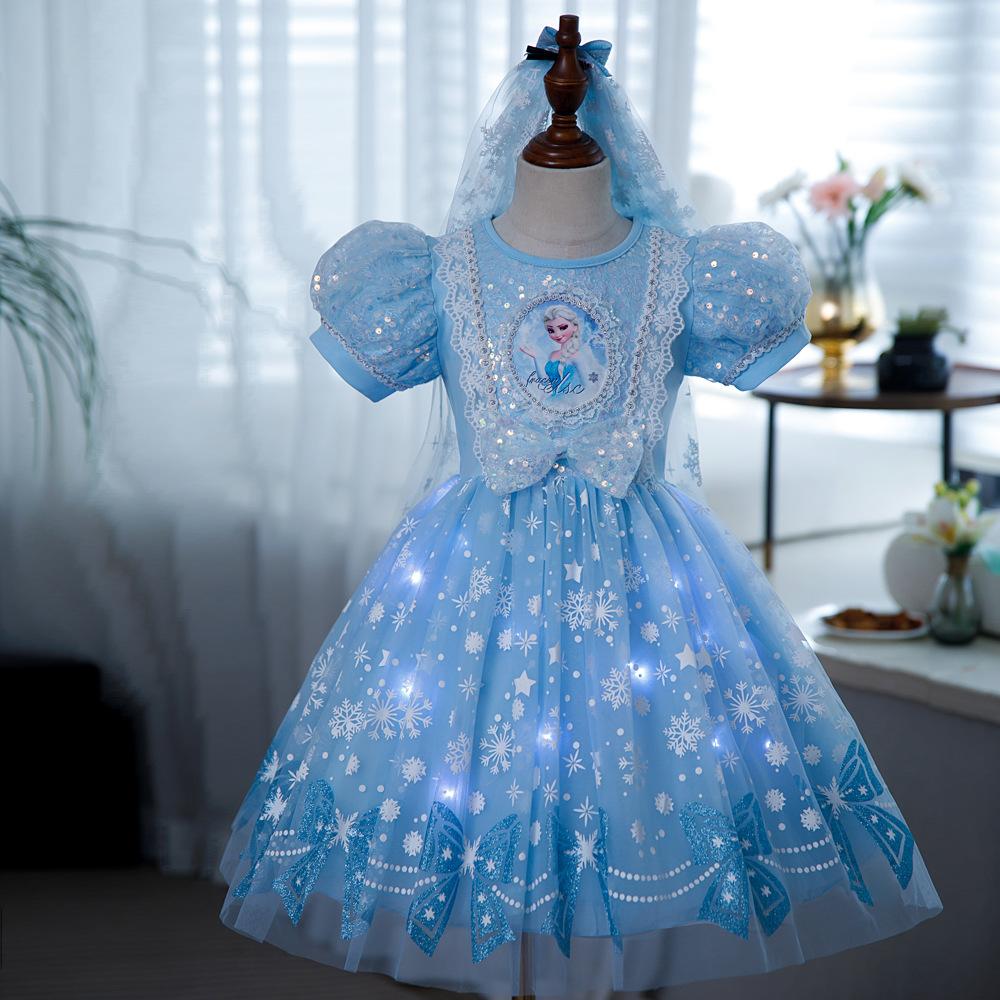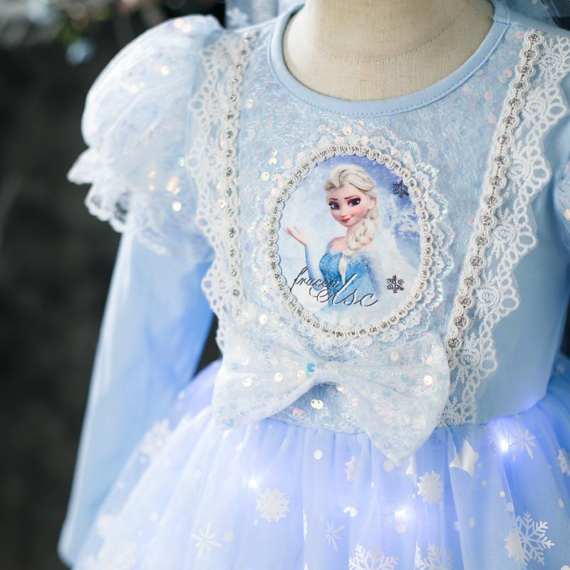 Vestido de Princesa Elsa Brilhante Frozen Vestido Elsa com Glitter Vestido de Princesa Estampado Infantil Dia das Crianças