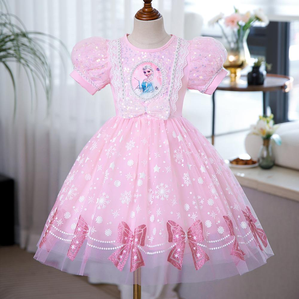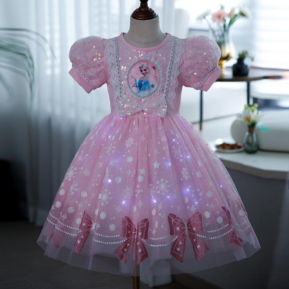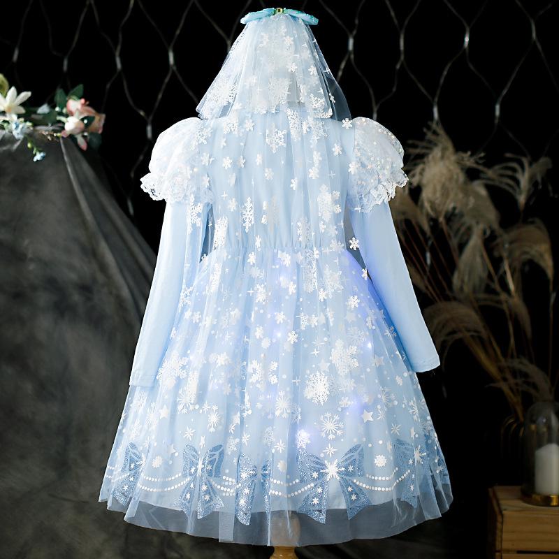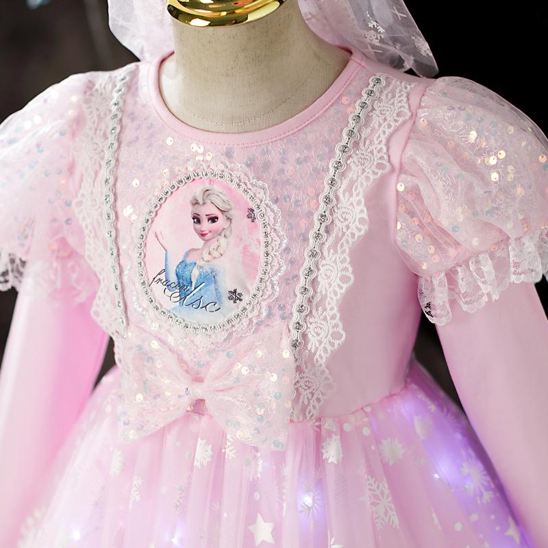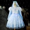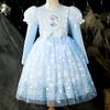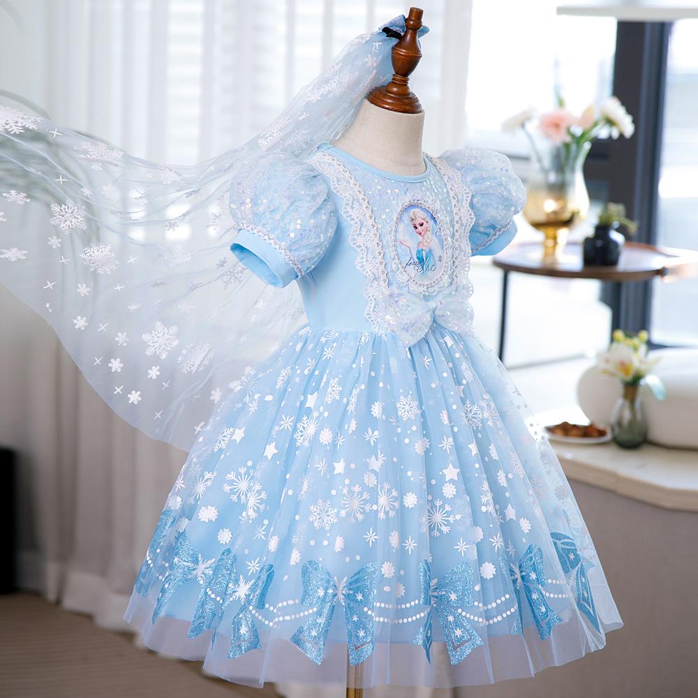 Vestido de Princesa Elsa Brilhante Frozen Vestido Elsa com Glitter Vestido de Princesa Estampado Infantil Dia das Crianças