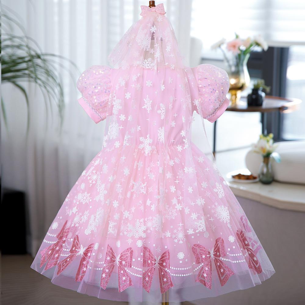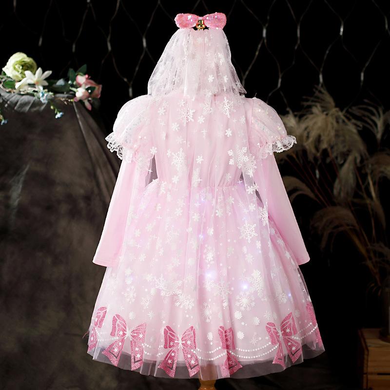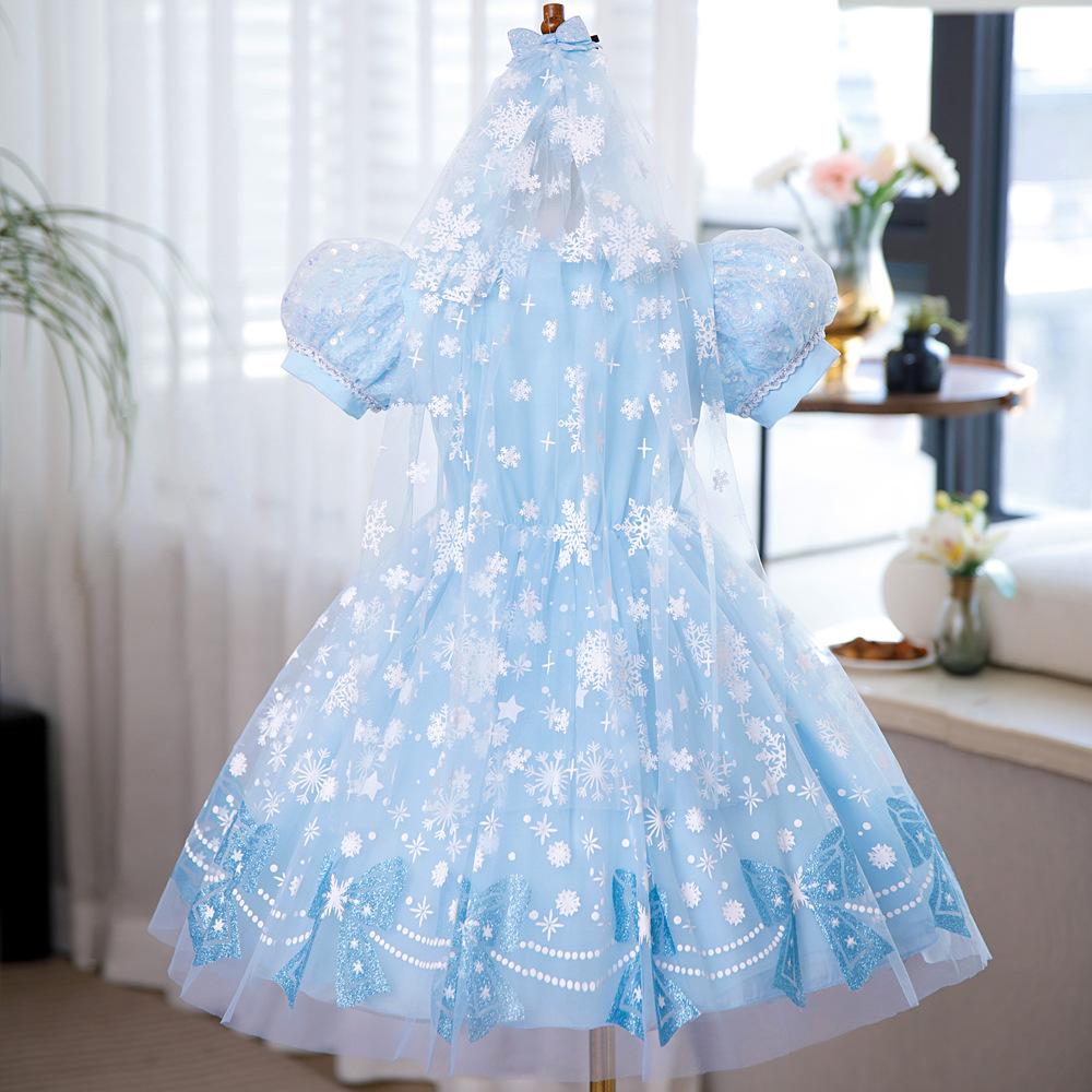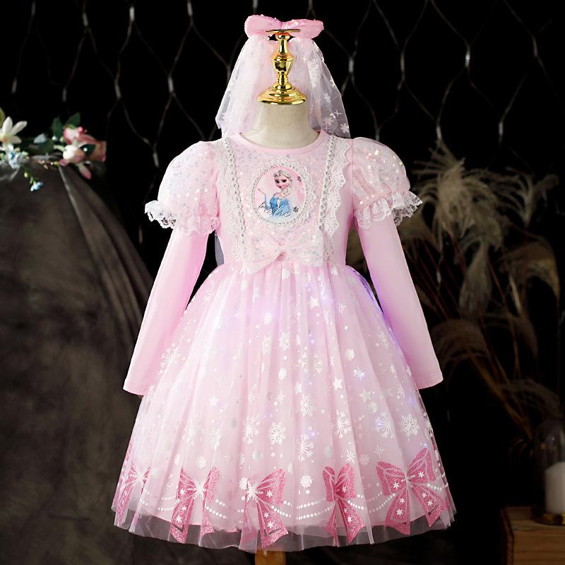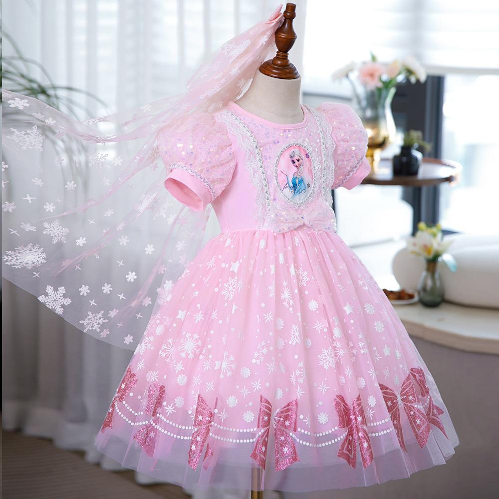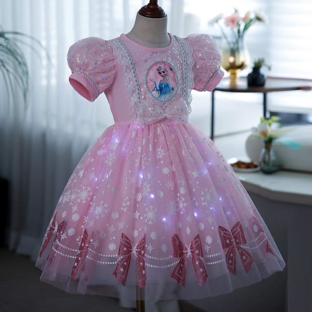Vestido de Princesa Elsa Brilhante Frozen Vestido Elsa com Glitter Vestido de Princesa Estampado Infantil Dia das Crianças