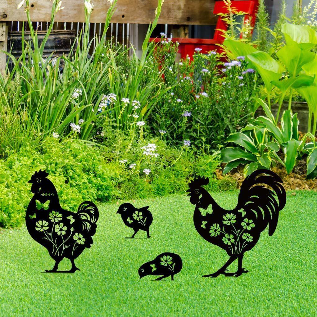 Pacote de quatro peças de metal transfronteiriço novo plug-in de árvore de floresta de jardinagem de frango decoração de plug-in de jardim ao ar livre
