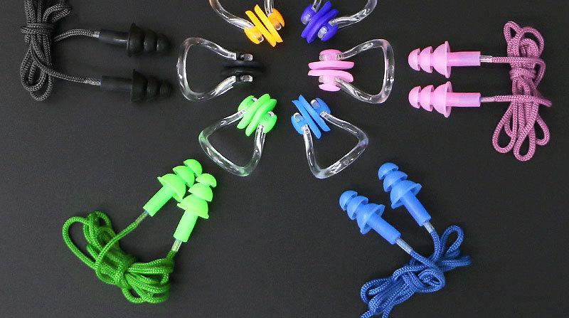 Caixa de protetores auriculares com clipe nasal para natação, anti-asfixia e anti-ouvido, silicone para água, equipamentos de natação para crianças e adultos, fabricantes por atacado