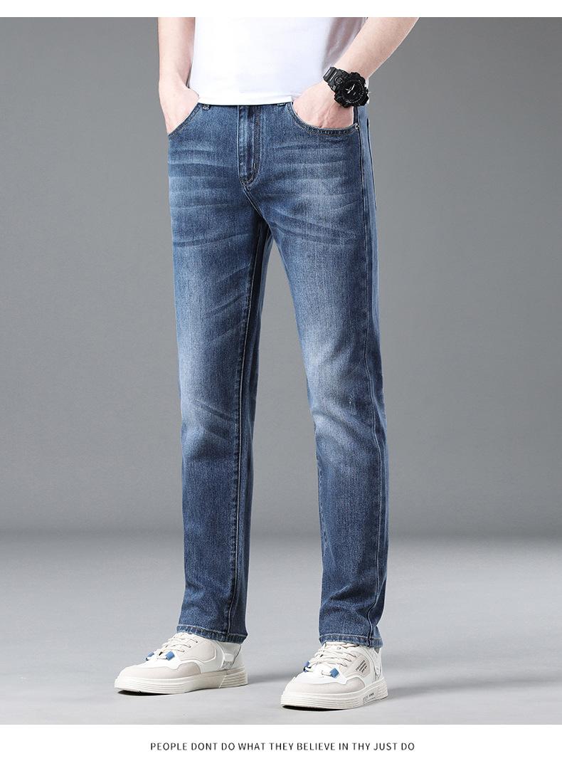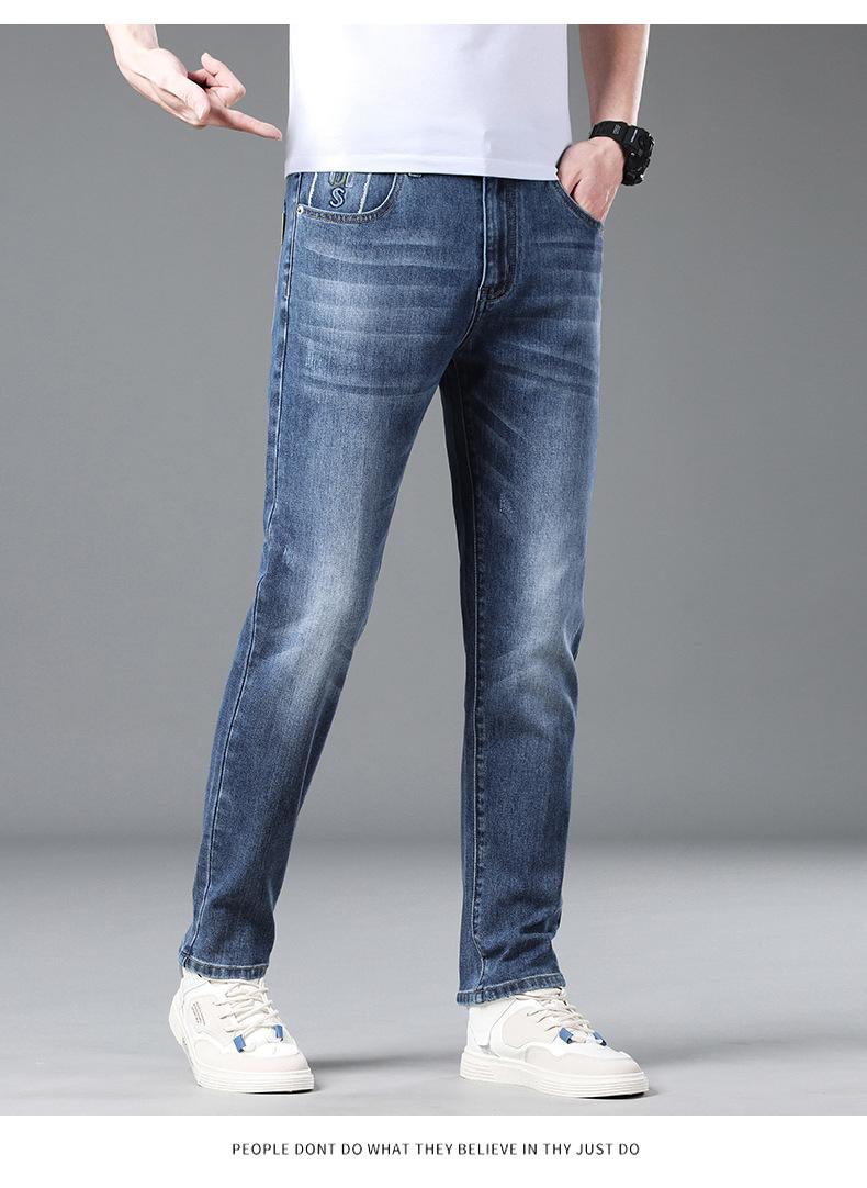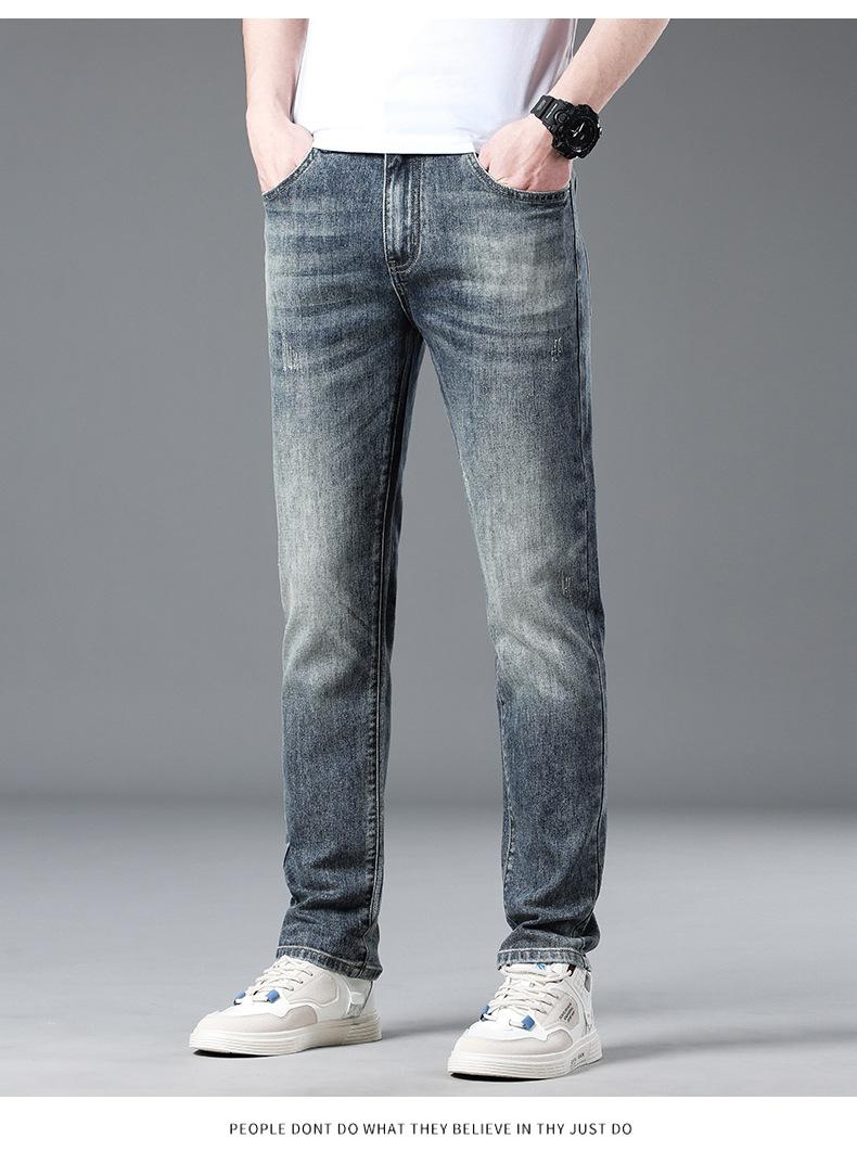 2024 Verão Novo Jeans High-end Masculino Reta Slim-fit Stretch Daniel Calças Jovens Estilo Americano Retro Calças Masculinas