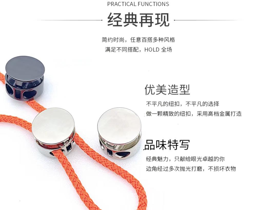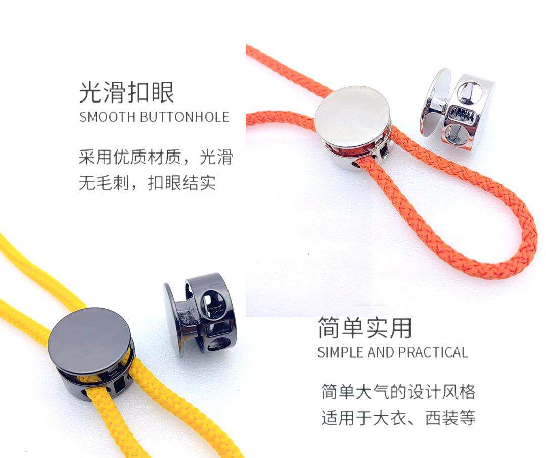 Atacado grande fivela de corda de metal cilíndrica mola fivela para baixo jaqueta cartão corda acessórios de vestuário elástico fivela ajustável