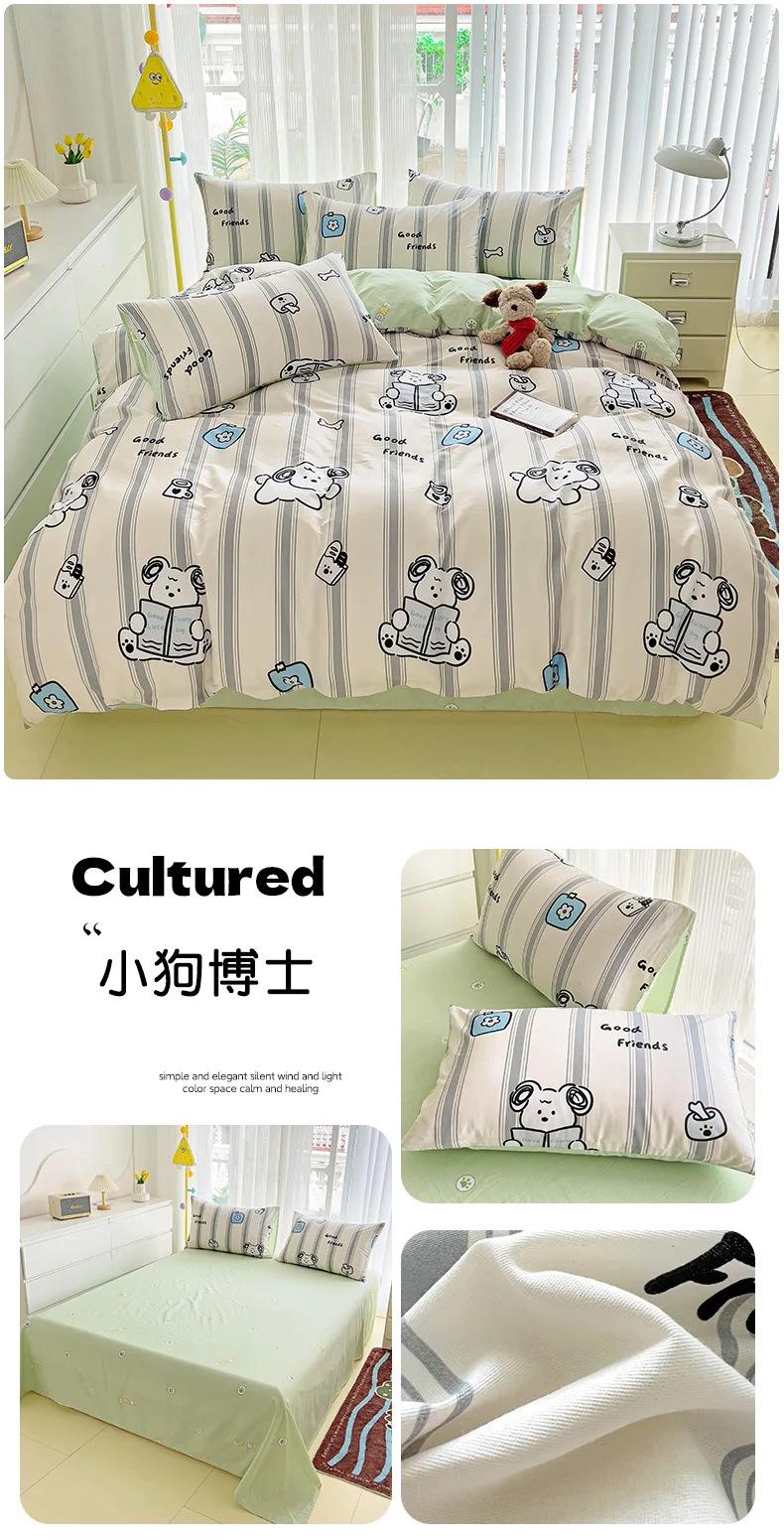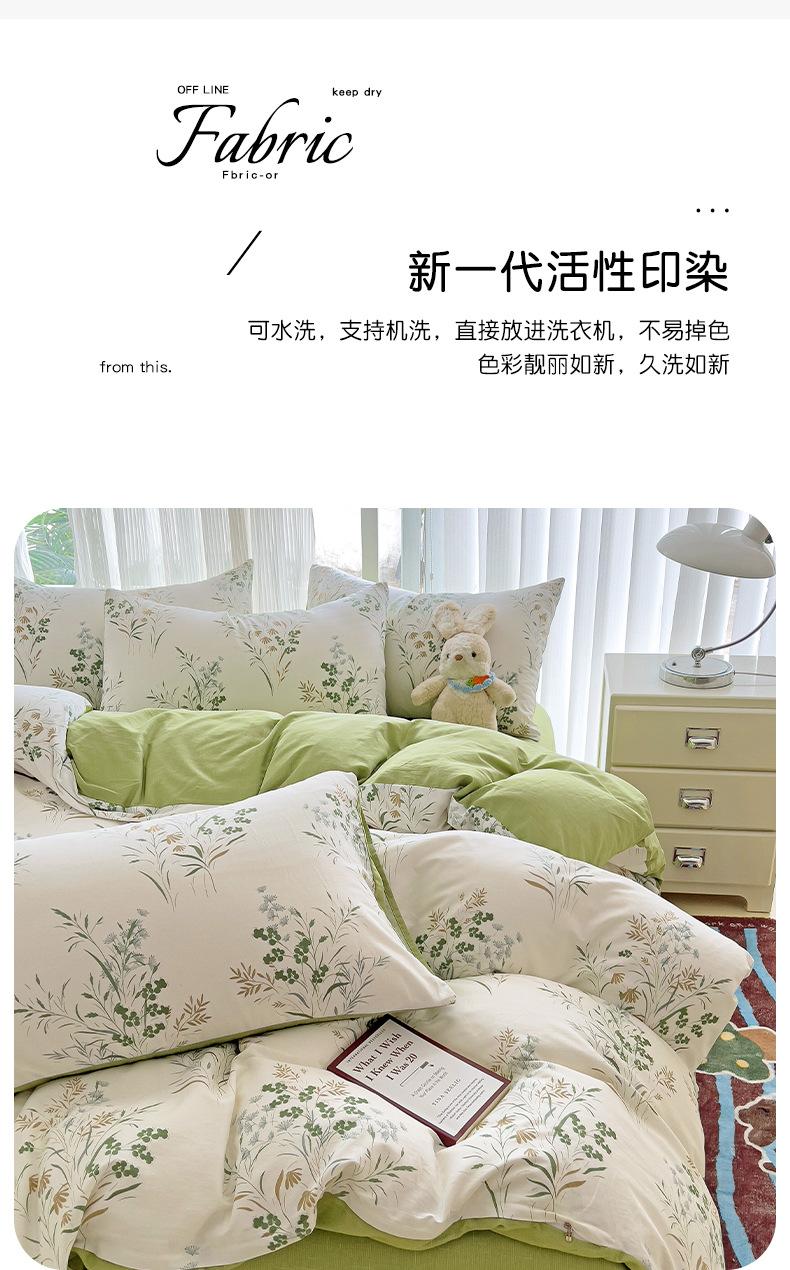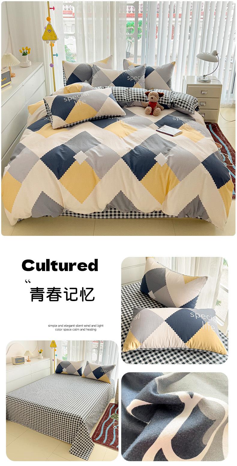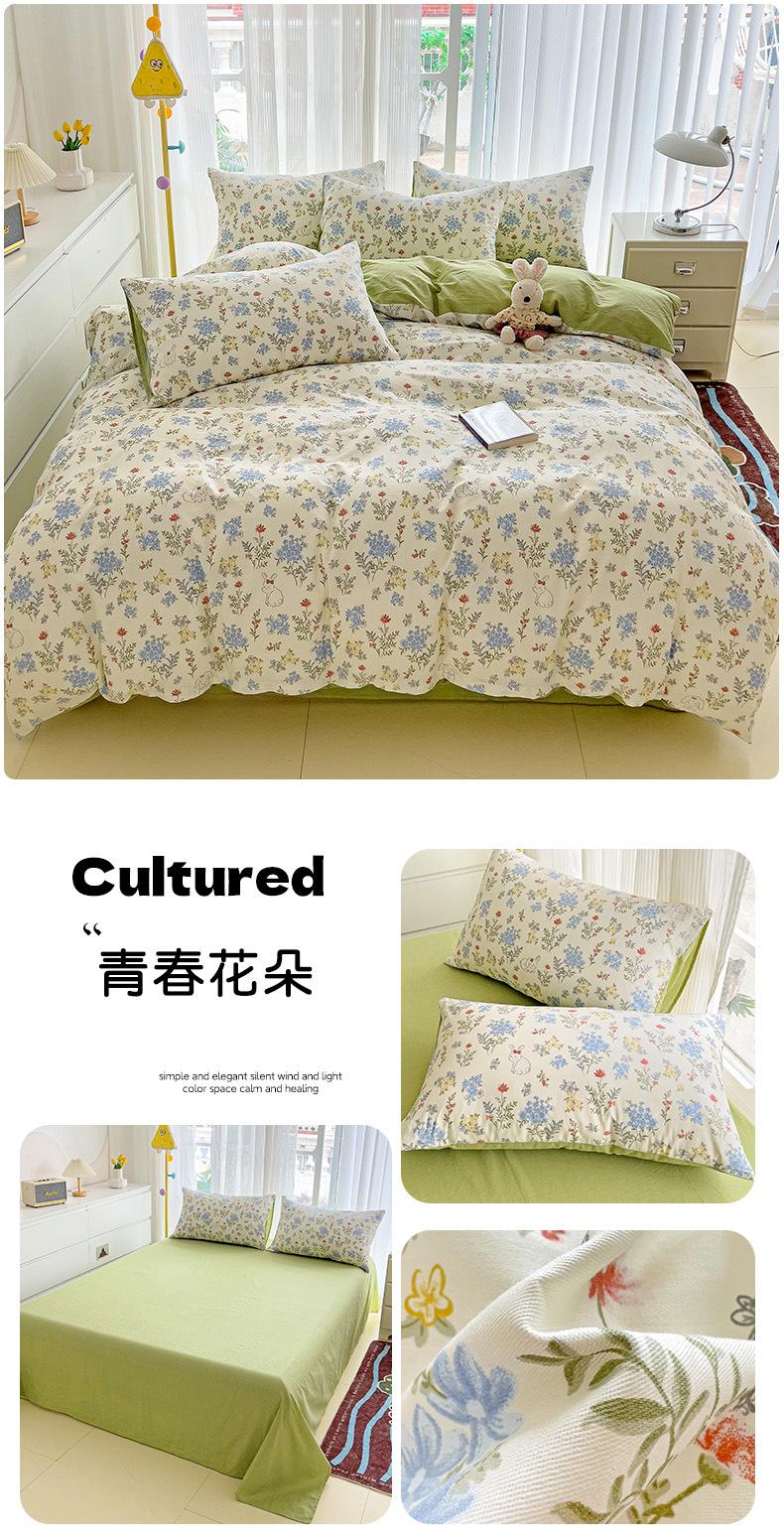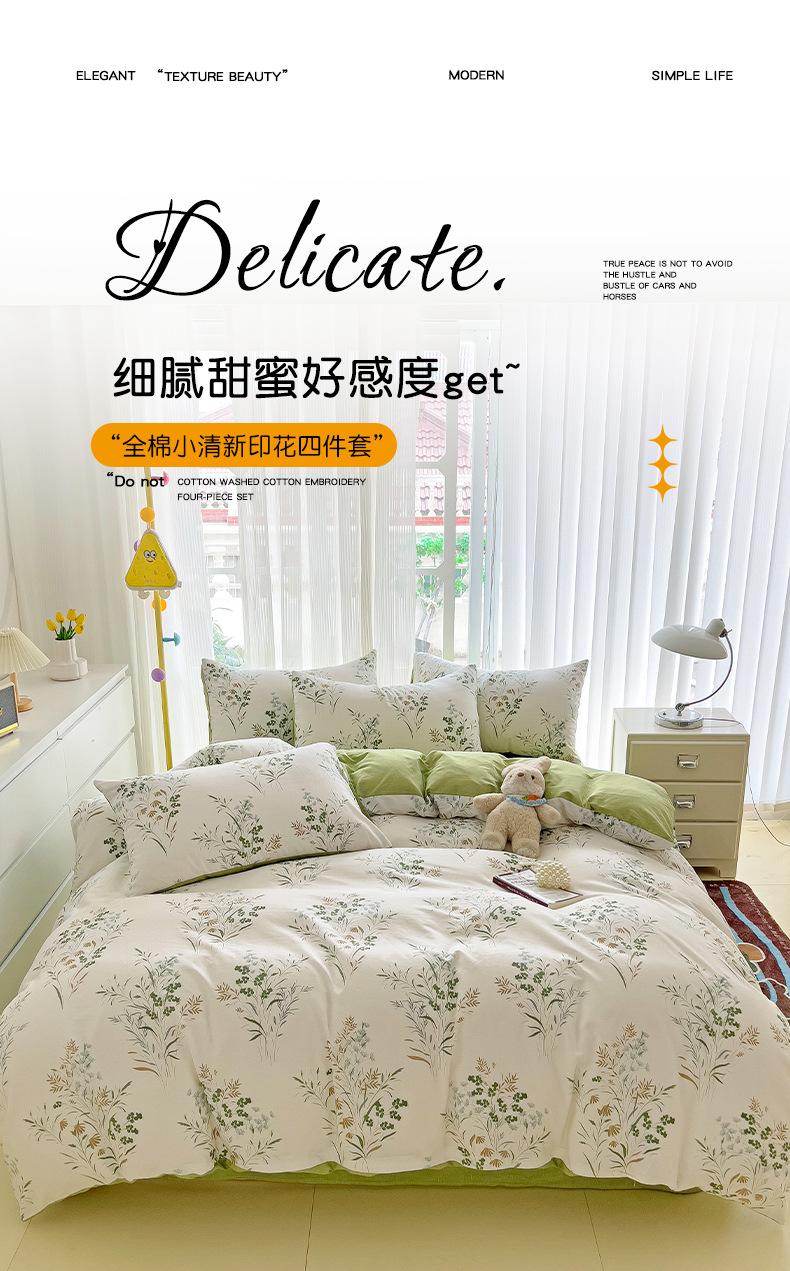 Conjunto de lençóis de quatro peças, capa de edredom, cor sólida simples, dormitório estudantil, algodão lavado 3, lençol de três peças, roupa de cama 4