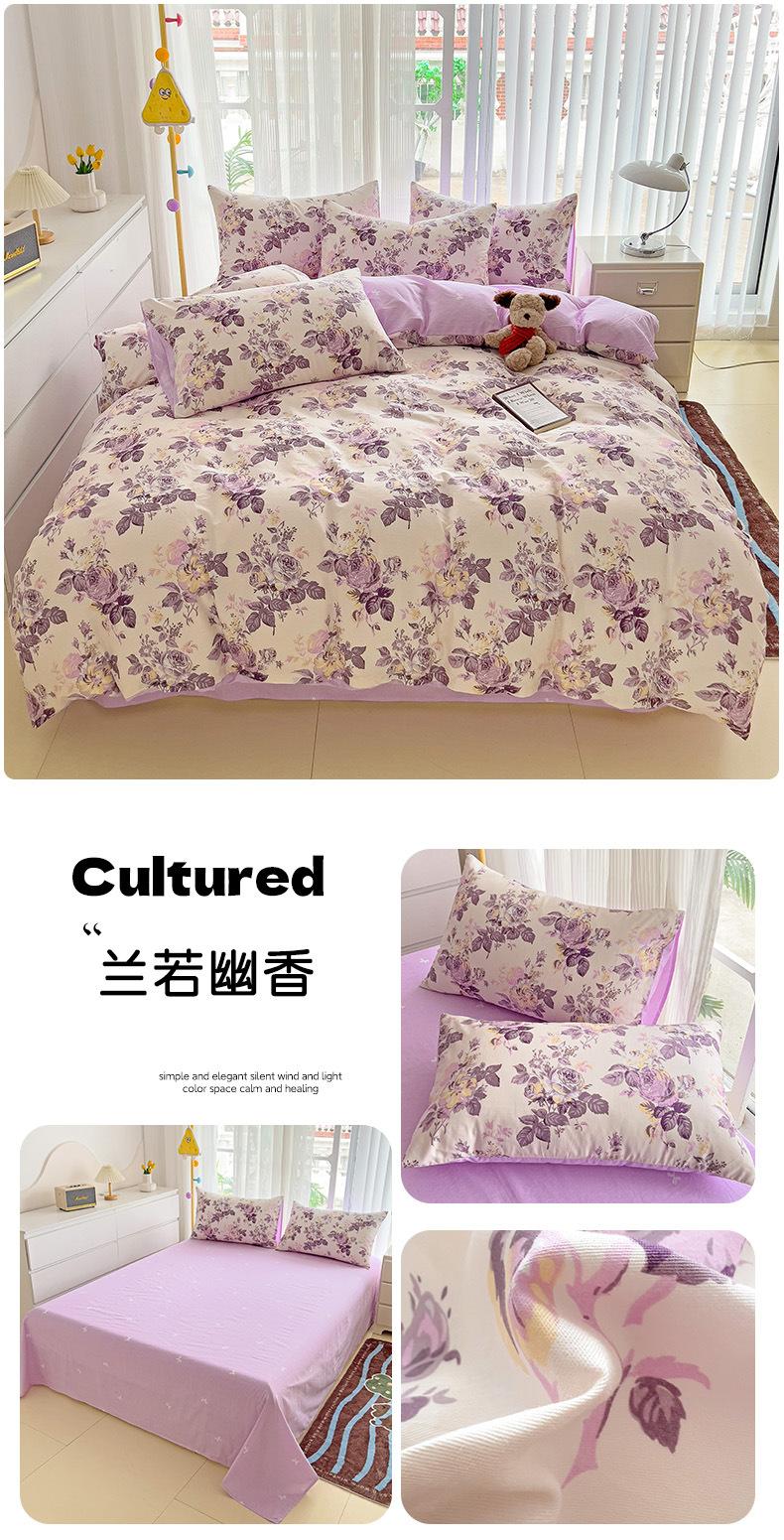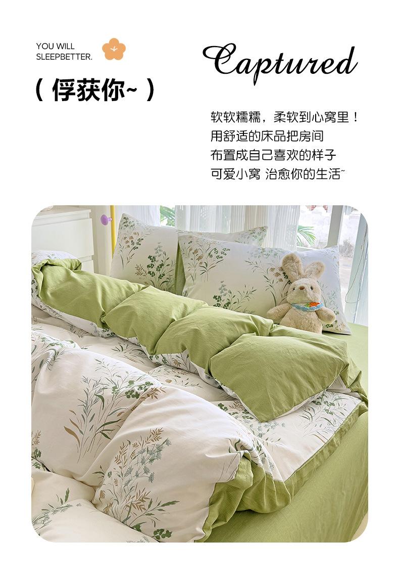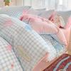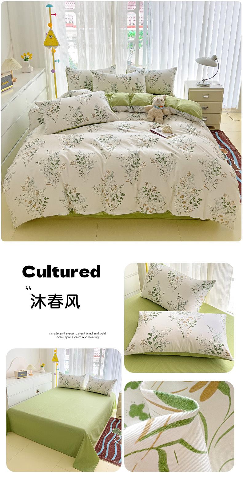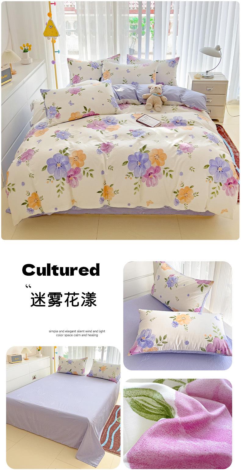 Conjunto de lençóis de quatro peças, capa de edredom, cor sólida simples, dormitório estudantil, algodão lavado 3, lençol de três peças, roupa de cama 4