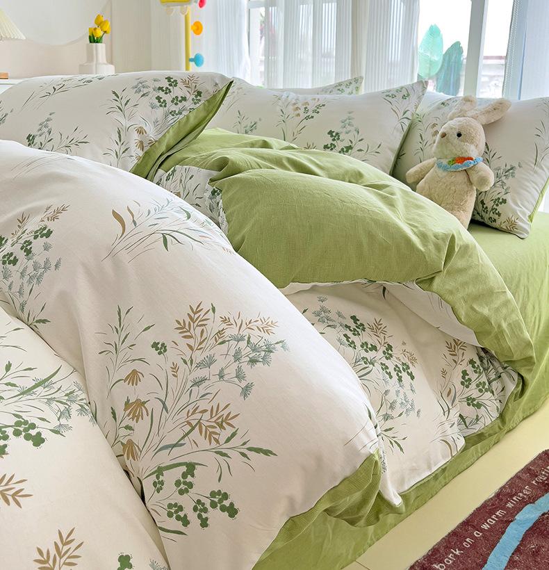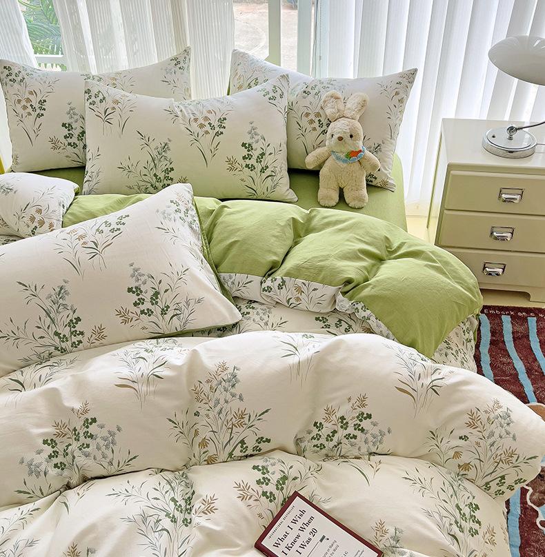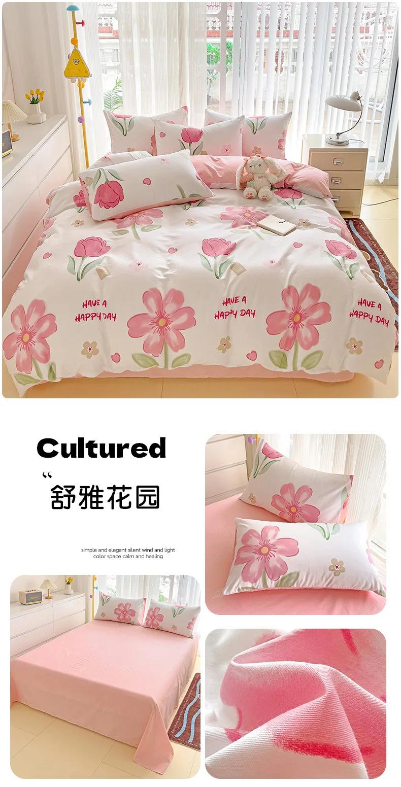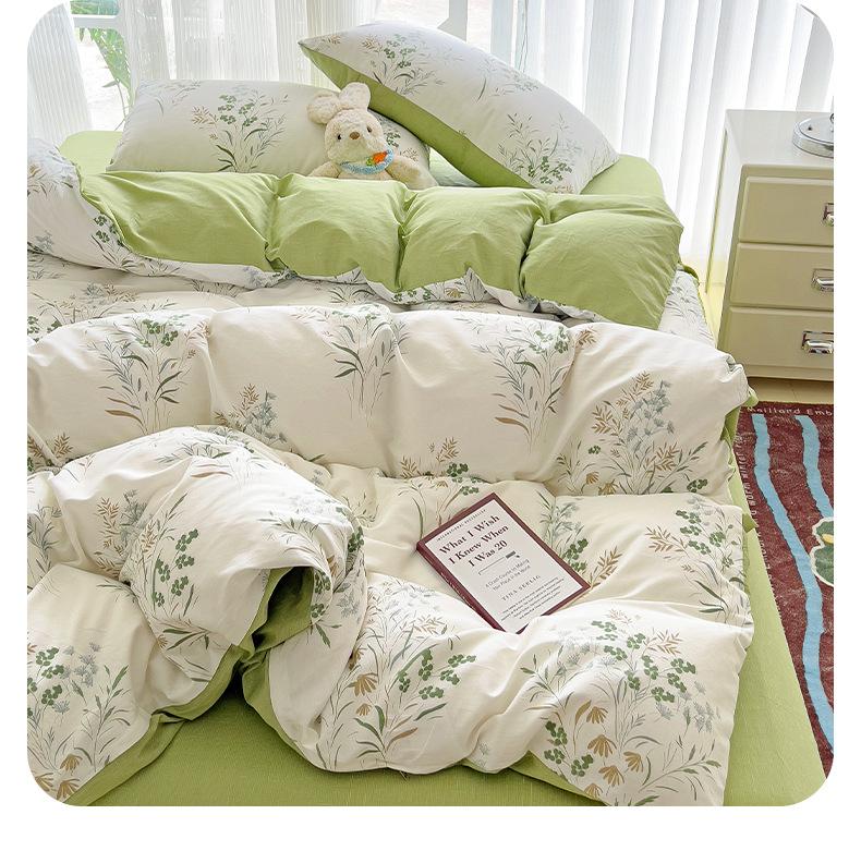Algodão Conjunto de Quatro Peças de Algodão 2024 Nova Roupa de Cama Floral Fresco Colcha Cobrir Lençol Dormitório Conjunto de Três Peças Roupa de Cama
