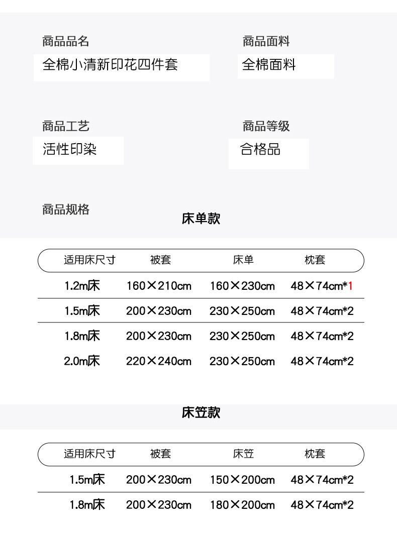 1.2m bed sheets three-piece set (quilt cover 160*210), 1.5m bed sheet four-piece set (quilt cover 200*230), 1....