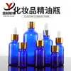 Frasco de óleo essencial de vidro azul de 10 ml Frasco conta-gotas à prova de luz de 30 ml Frasco de amostra pequena de essência de engarrafamento cosmético portátil