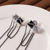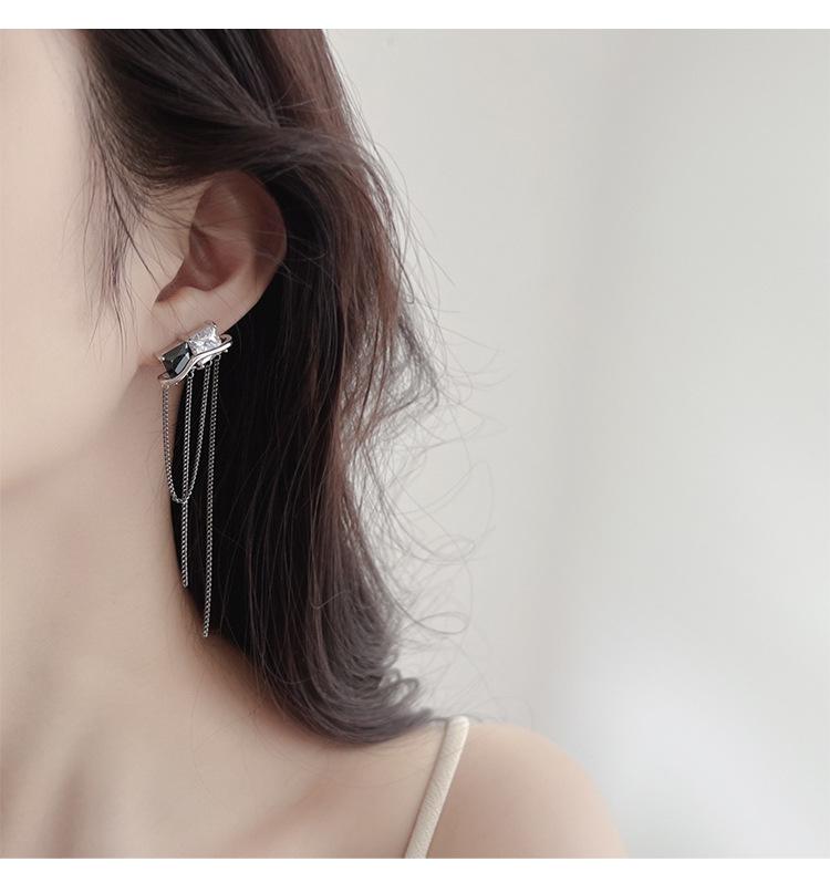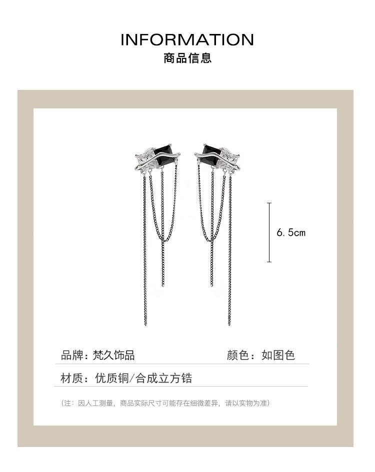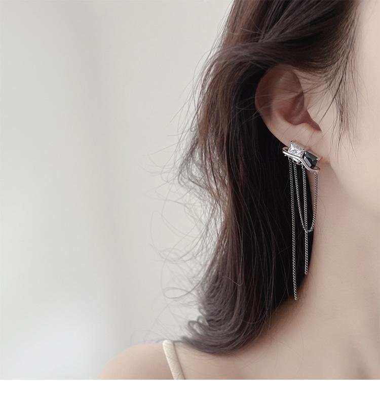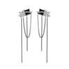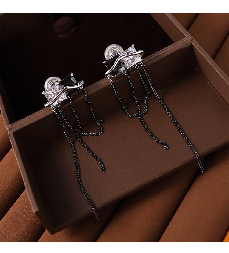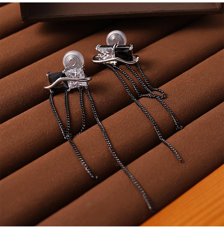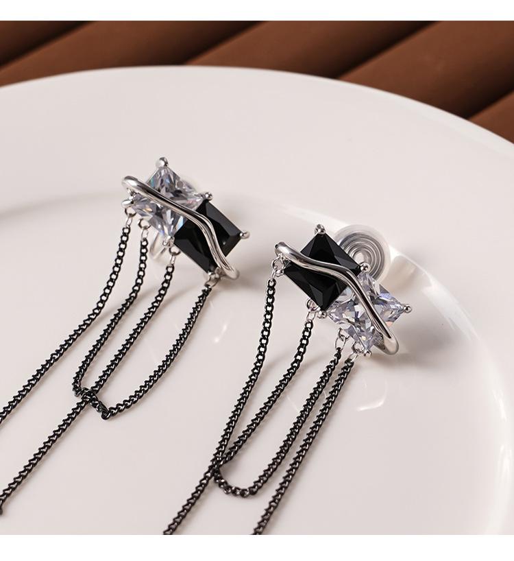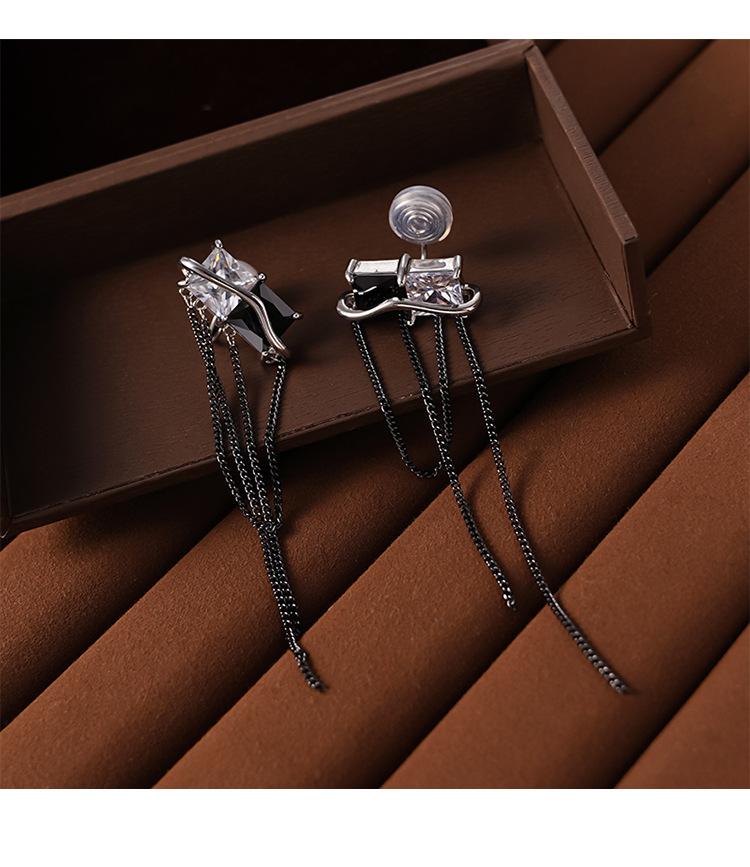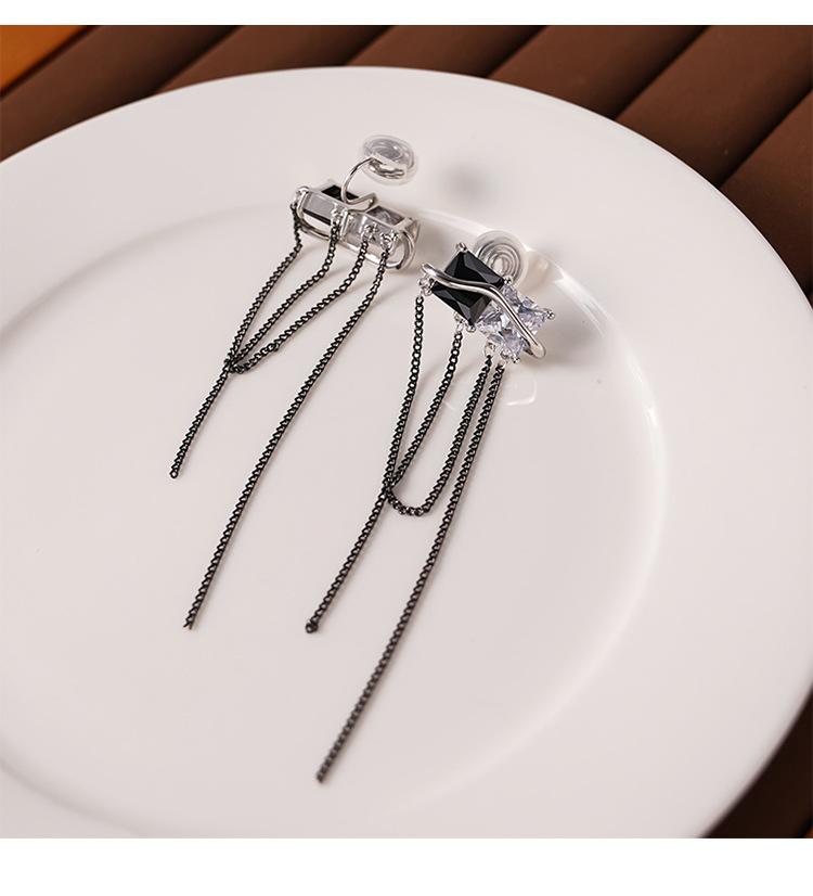 Design Senso Personalidade Cor de Contraste Preto e Branco Zircônia Brincos Longos de Borla Clipe de Orelha Feminino com Incenso de Mosquito sem Furos na Orelha Moda Elegante