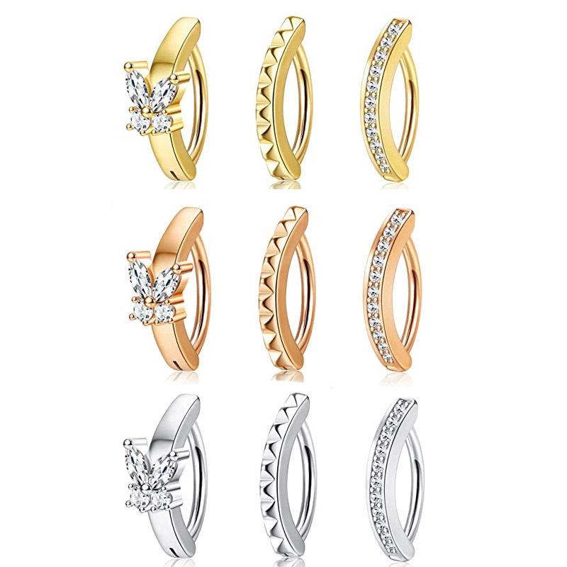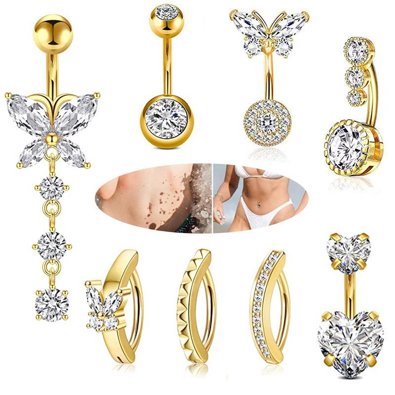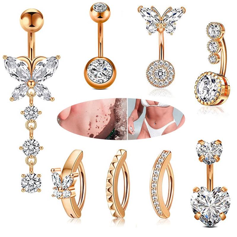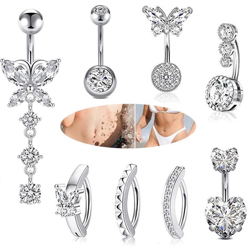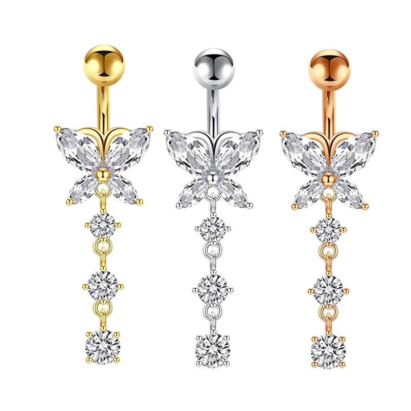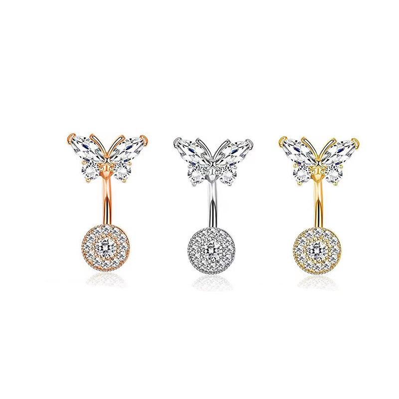Joias de Piercing de Aço Inoxidável Borboleta Coração Zircônia Diamante Duplo Conjunto de Anel de Umbigo Europeu e Americano Sexy Unha de Umbigo