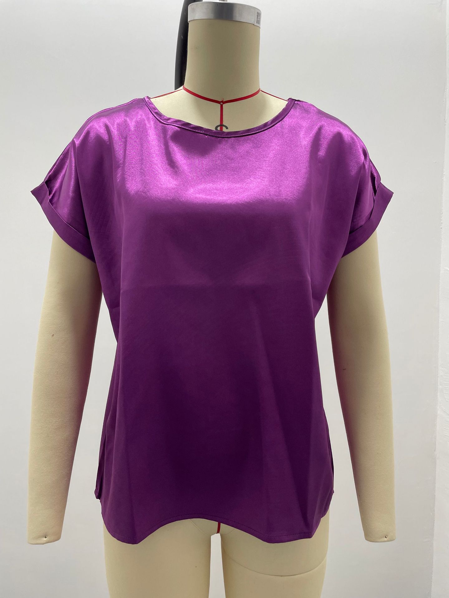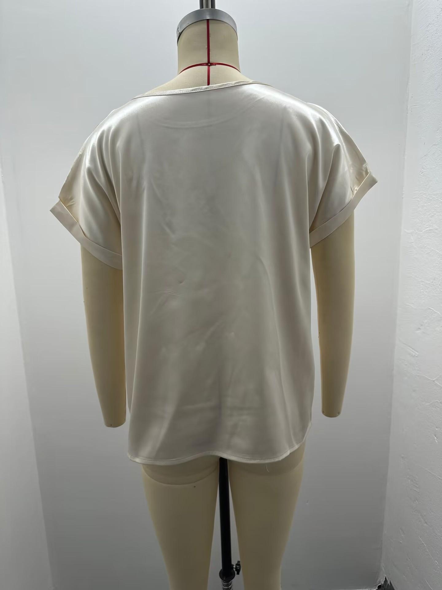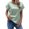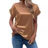 Transfronteiriço 2025 Nova Camiseta de Cetim de Manga Curta Feminina para Primavera e Verão, Solta Casual Gola Redonda Cetim para Mulheres