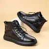 Sapatos Masculinos 2025 Novos Outono e Inverno Forrados com Lã Quentes Botas Masculinas Modernas Versáteis Sapatos de Couro Genuíno Cano Alto Antiderrapantes Resistentes ao Desgaste