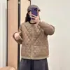 Comércio exterior transfronteiriço no início do outono nova jaqueta acolchoada de algodão curto feminino xadrez de diamante ins estilo sem gola jaqueta acolchoada de algodão de inverno leve