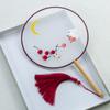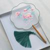 Leque redondo bordado estilo antigo produto acabado arte antiga retrô hanfu cheongsam show seda real dança su leque redondo bordado