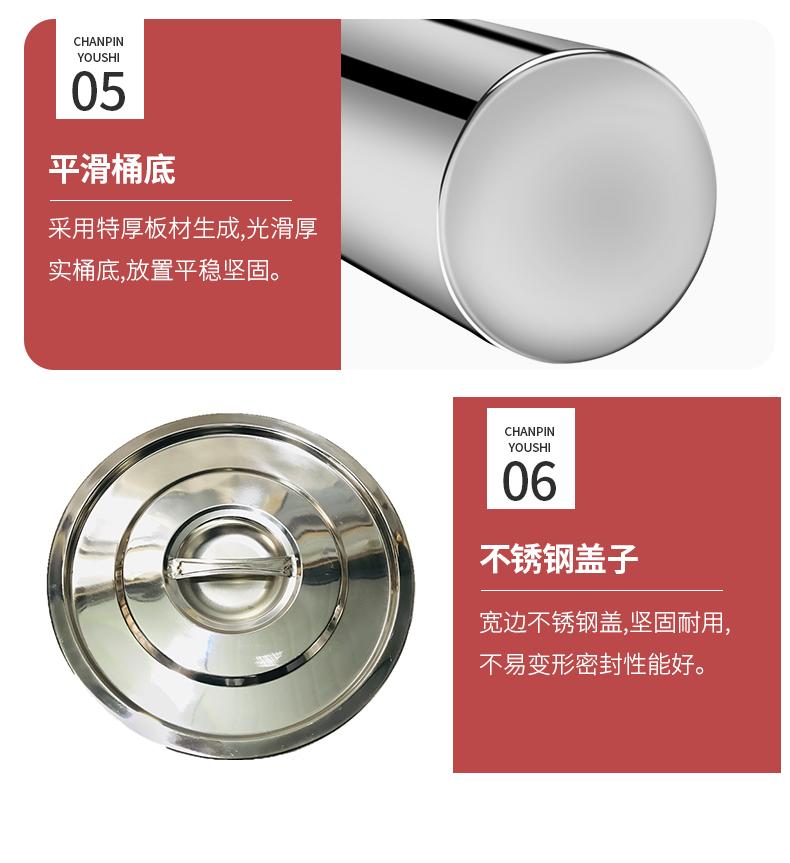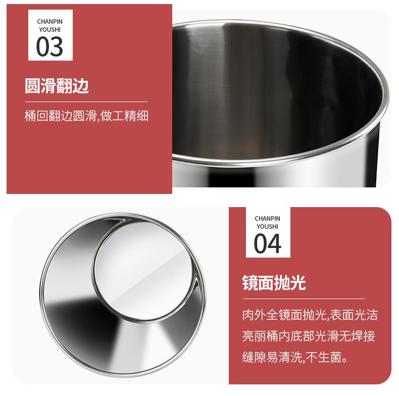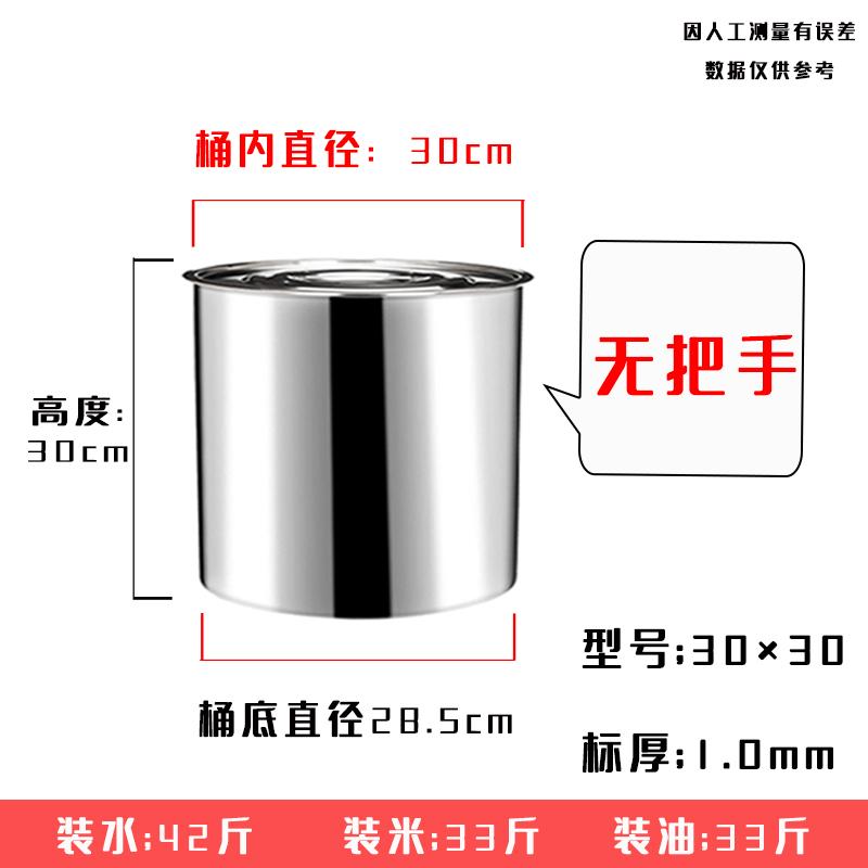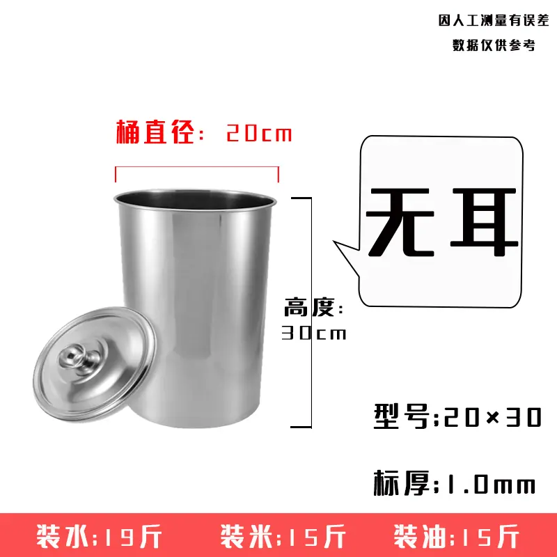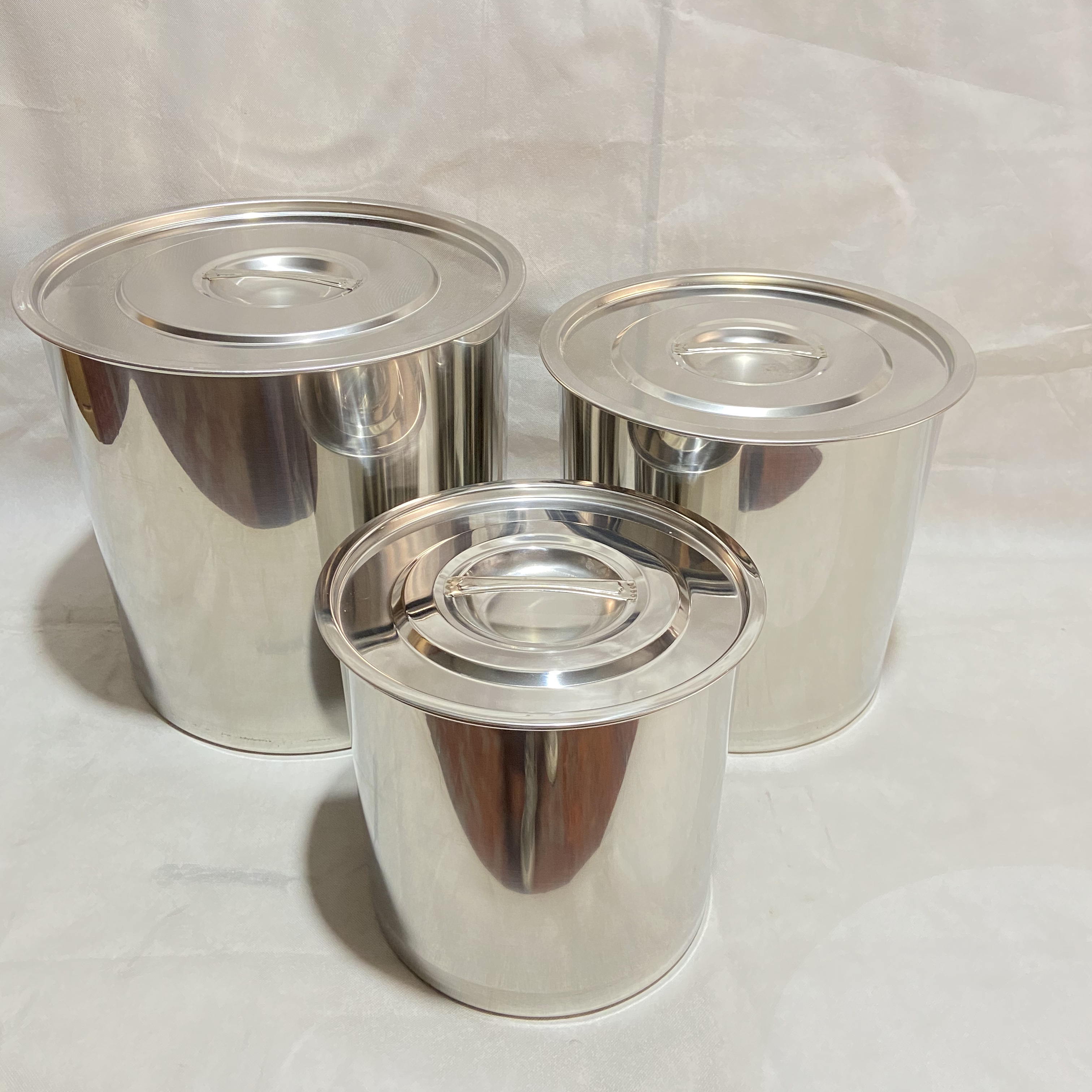 Balde de aço inoxidável não magnético engrossado Balde sem orelha Balde de sopa Balde de óleo comercial com tampa Balde redondo Balde de armazenamento Balde de 304 mm