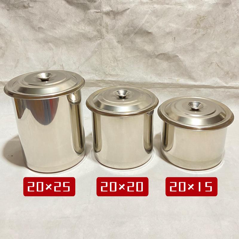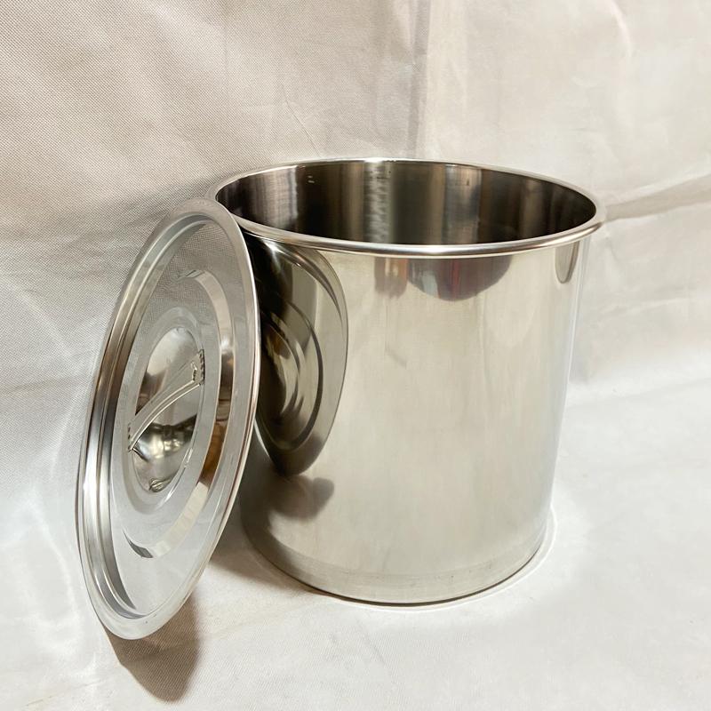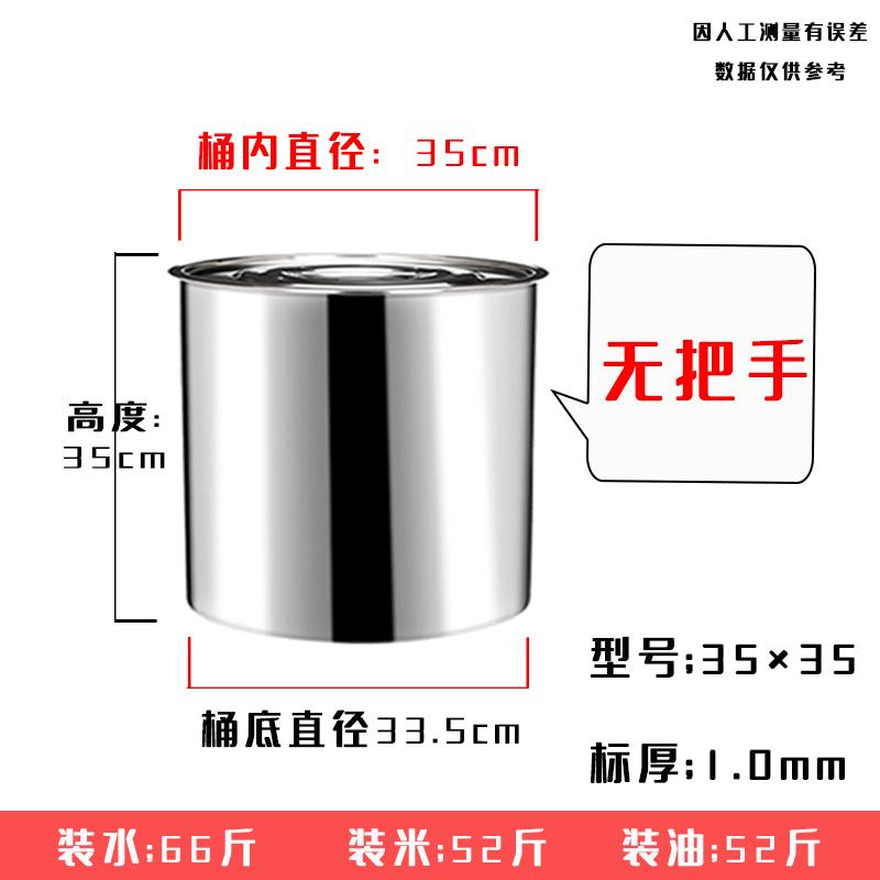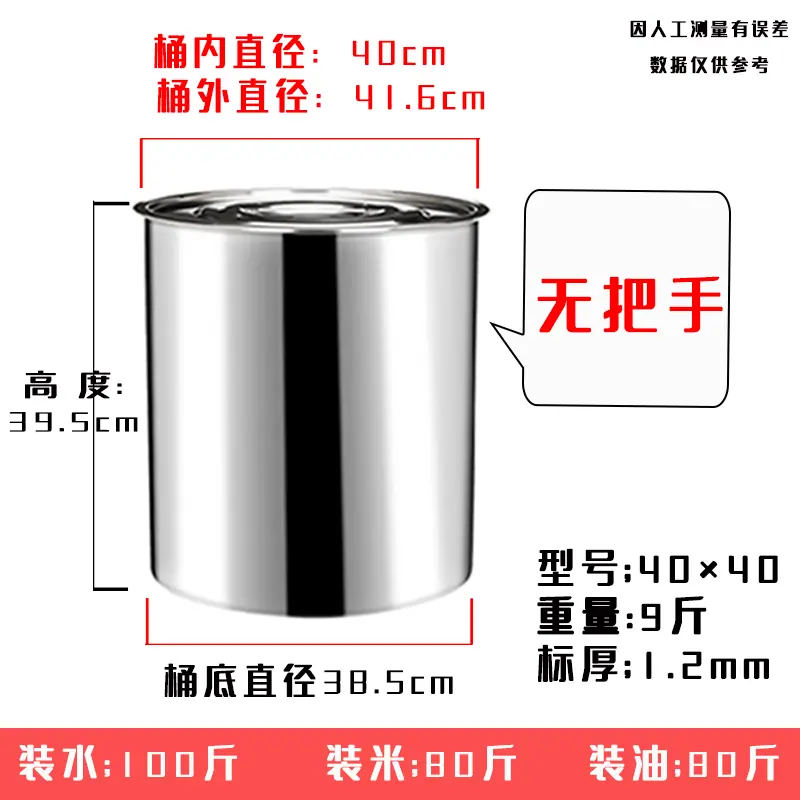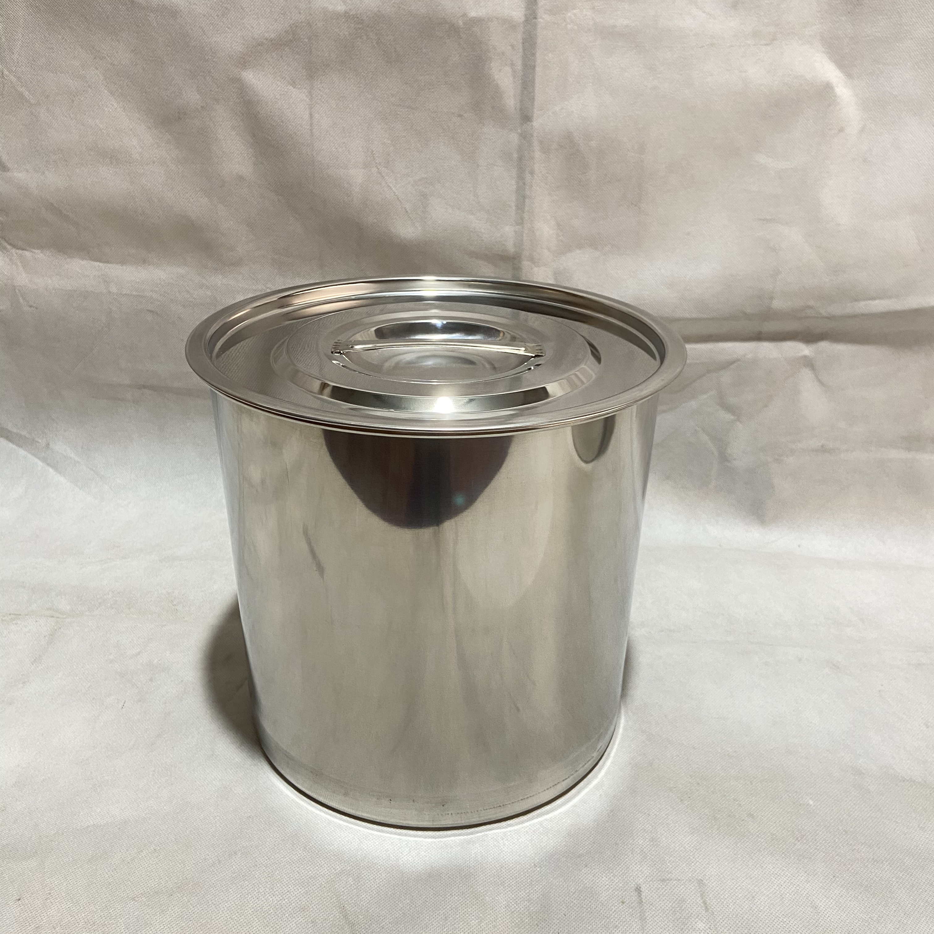 Balde de aço inoxidável não magnético engrossado Balde sem orelha Balde de sopa Balde de óleo comercial com tampa Balde redondo Balde de armazenamento Balde de 304 mm