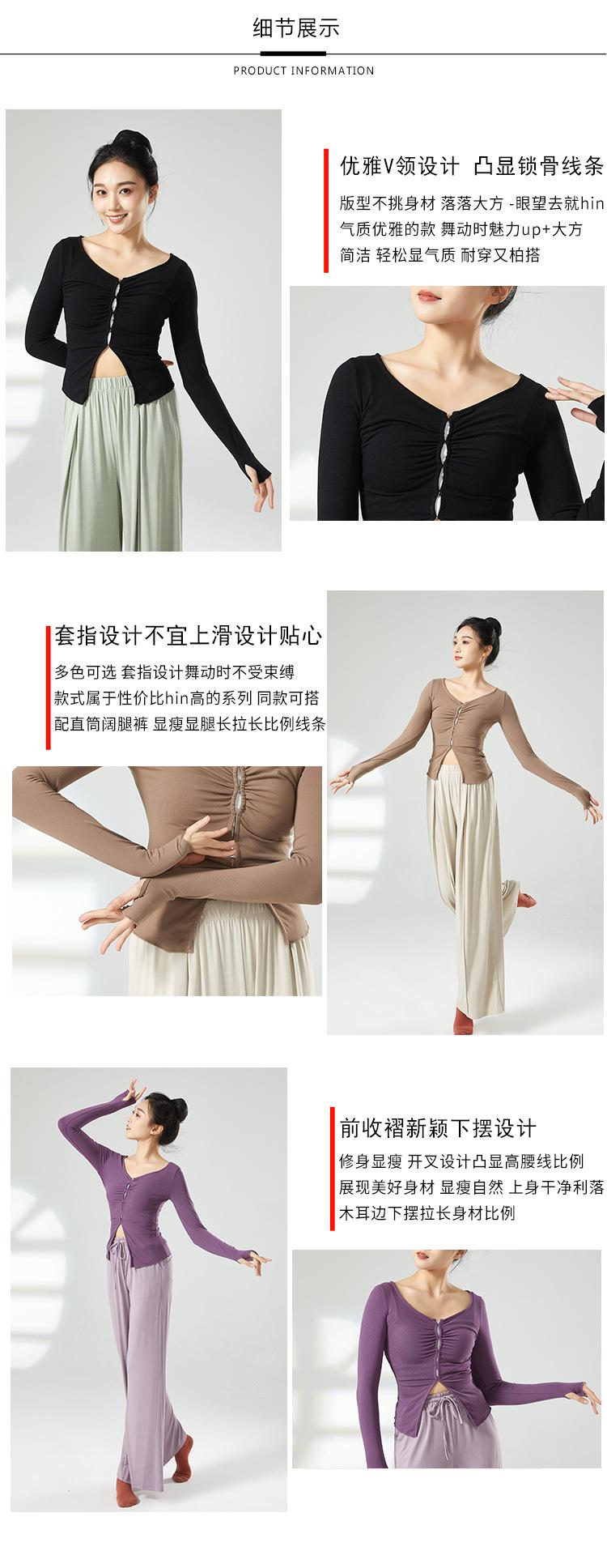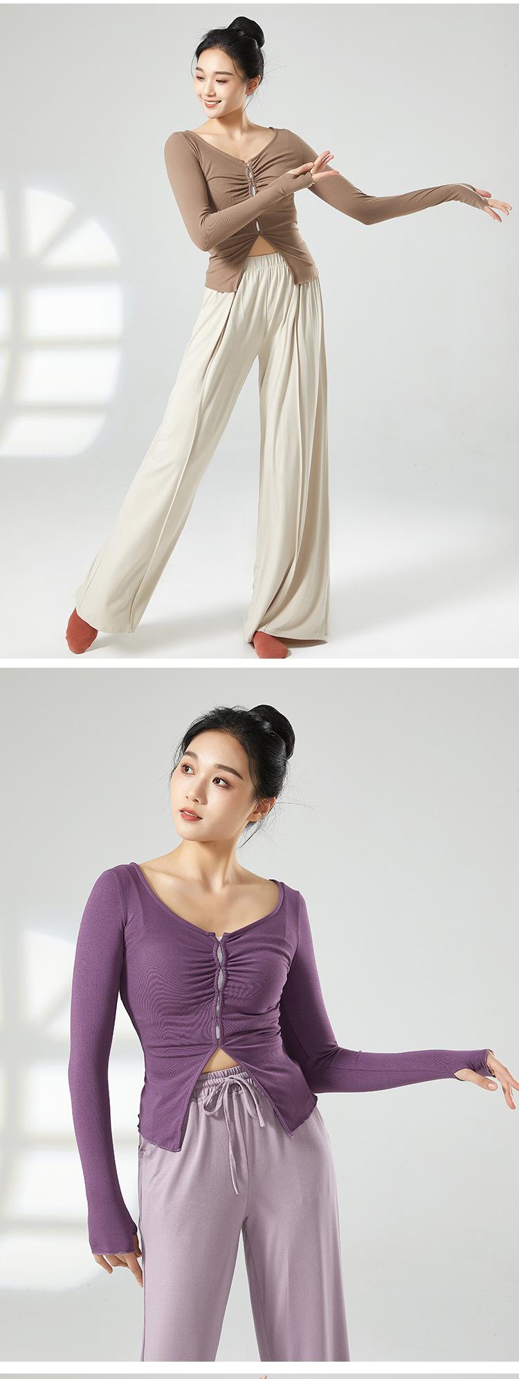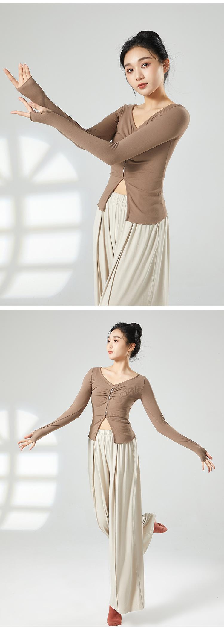 Dança moderna slim-fit cintura-exposta split top roupas de dança das mulheres roupas de prática de dança clássica roupas do corpo roupas de outono