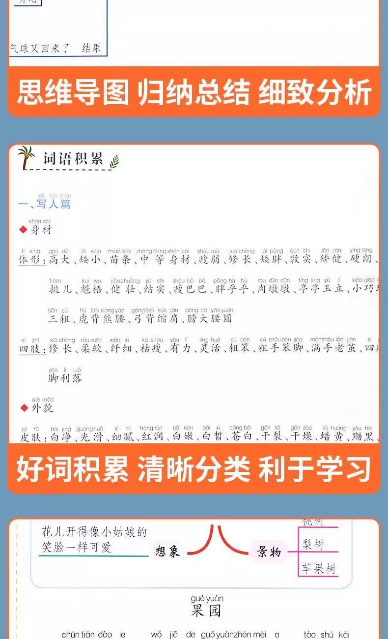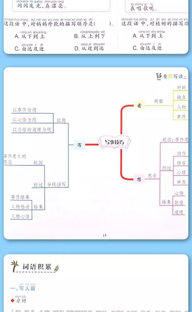Olhe para a imagem, escreva as palavras, mapa mental, alunos do ensino fundamental, 12ª série, edição de educação popular, material de composição chinesa, livro de treinamento especial de acumulação