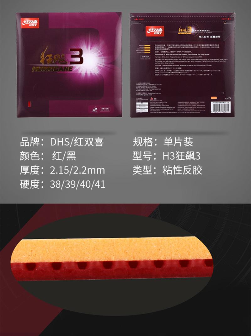 Vermelho Double Happiness Crazy 3 Alta Viscosidade Anti-Cola Conjunto de Cola 2,2 mm2,15 Grosso Paddle de Tênis de Mesa Borracha Crazy 3