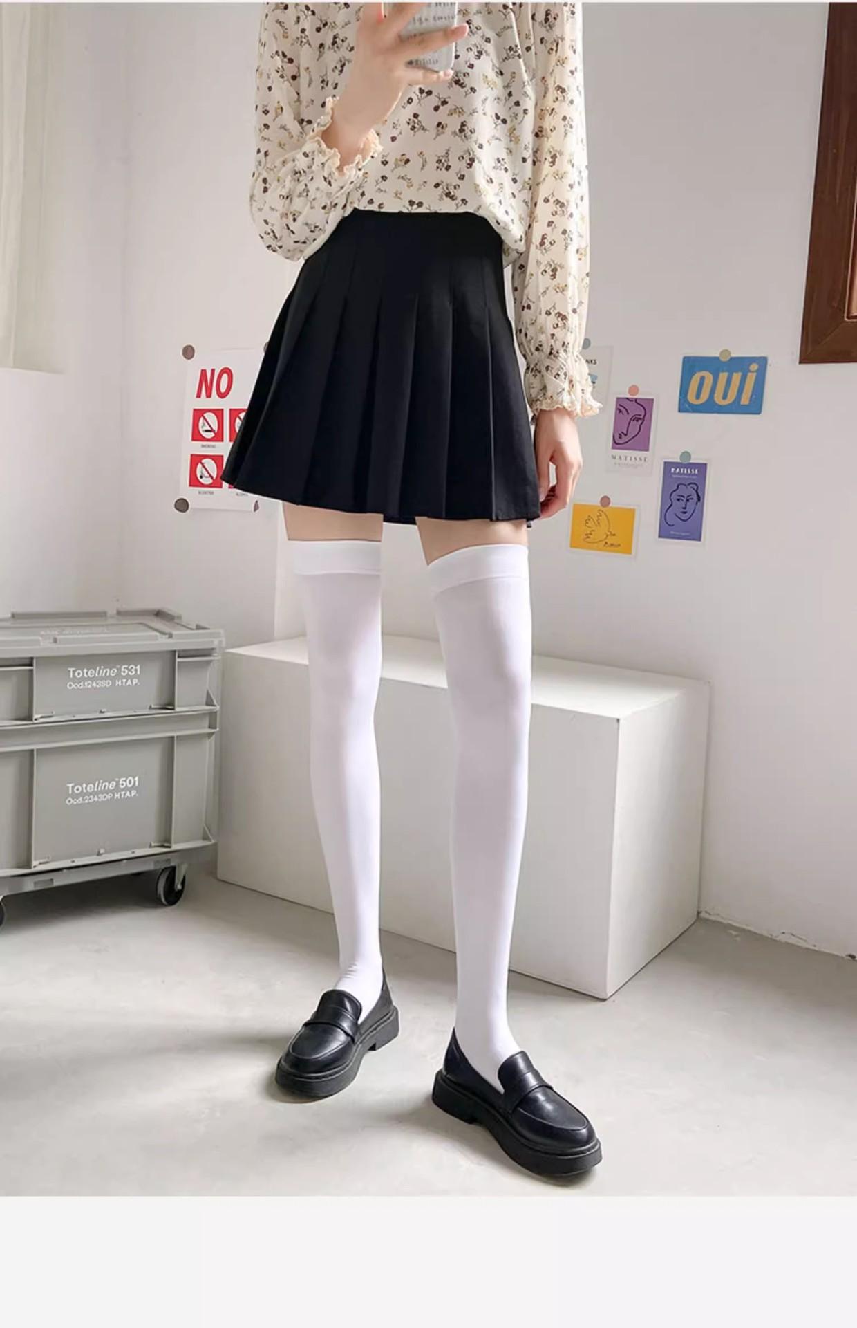 Meias acima do joelho verão feminino meias de veludo fino meias pretas meias JK meias de cano médio coxa alta mulheres