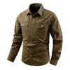 Camisa Nova Primavera e Outono 2025 Masculina Manga Longa Algodão Casual Cor Sólida Camisa Jovem e Meia-Idade Roupa de Trabalho Jaqueta Slim