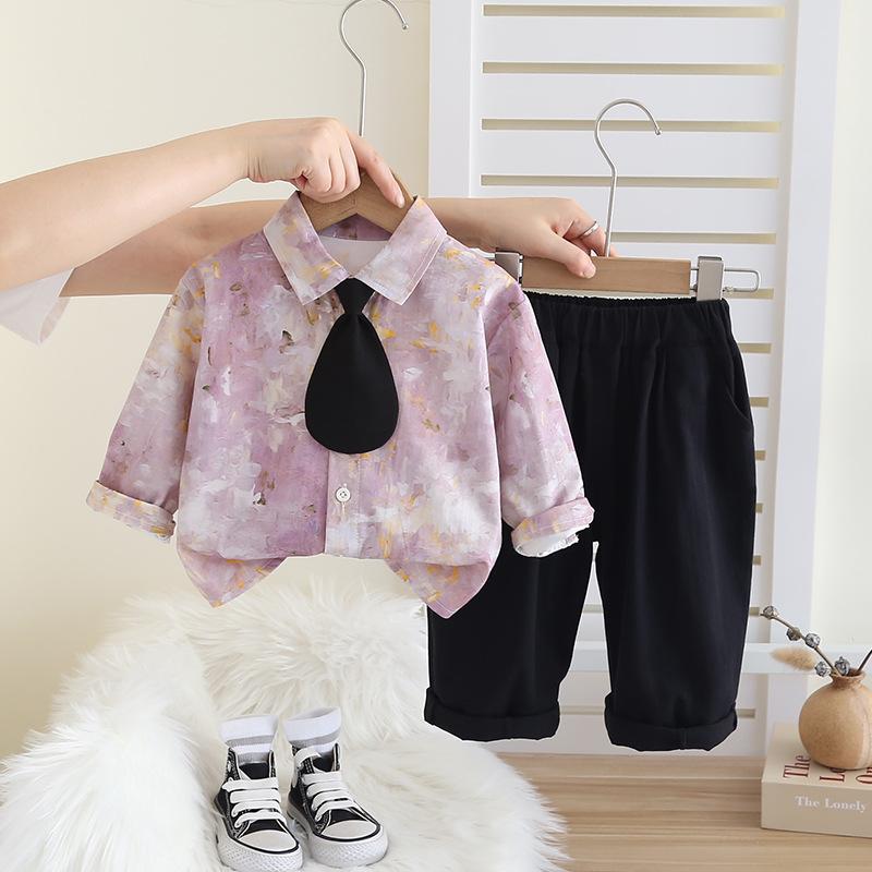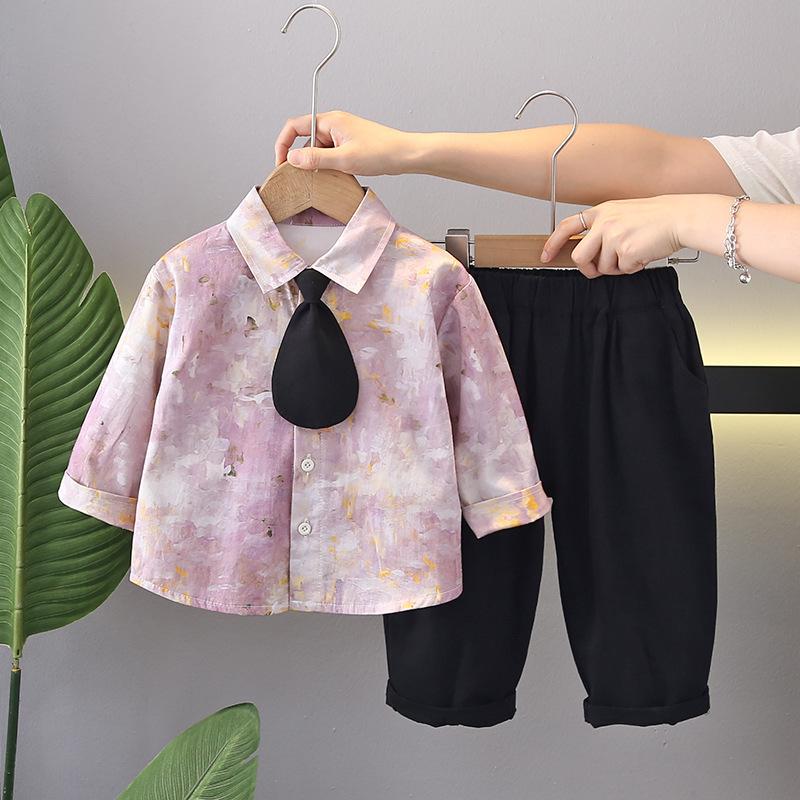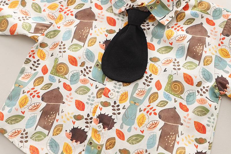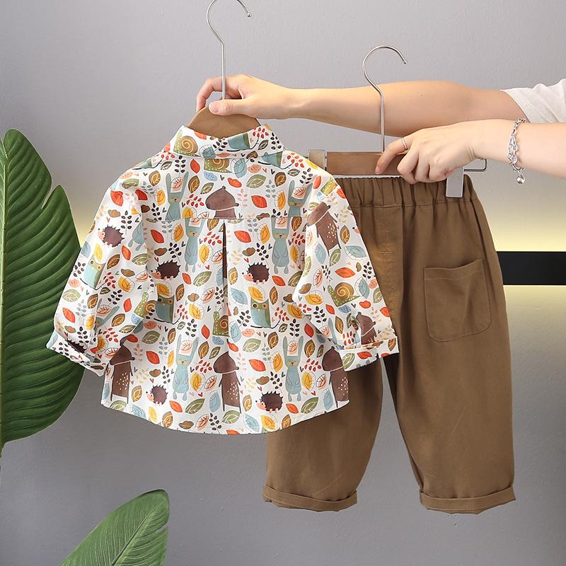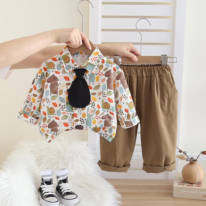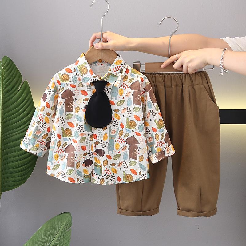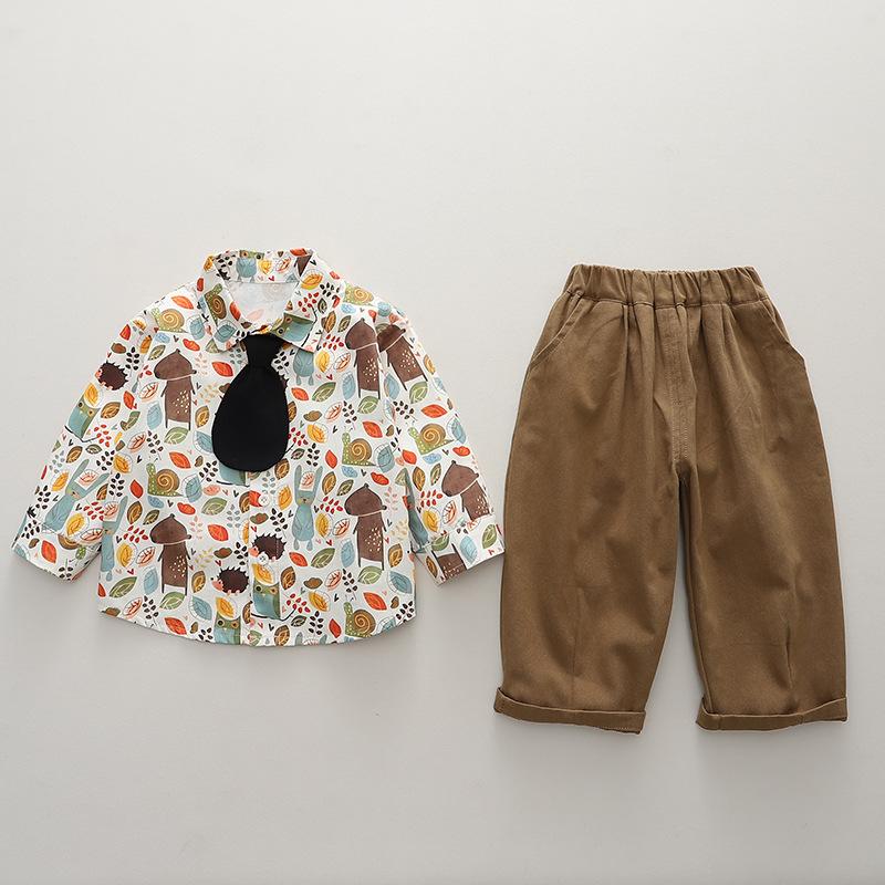 Roupas infantis Roupas de outono para bebês Camisa terno Pequenos meninos Estilo ocidental Bonito Terno de duas peças Primavera e Outono Roupas de bebê da moda