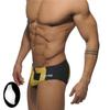 Spot swimwear dos homens triângulo copo calções de banho Europeu e Americano sexy cintura baixa maiô ultra-fino nylon impresso shorts