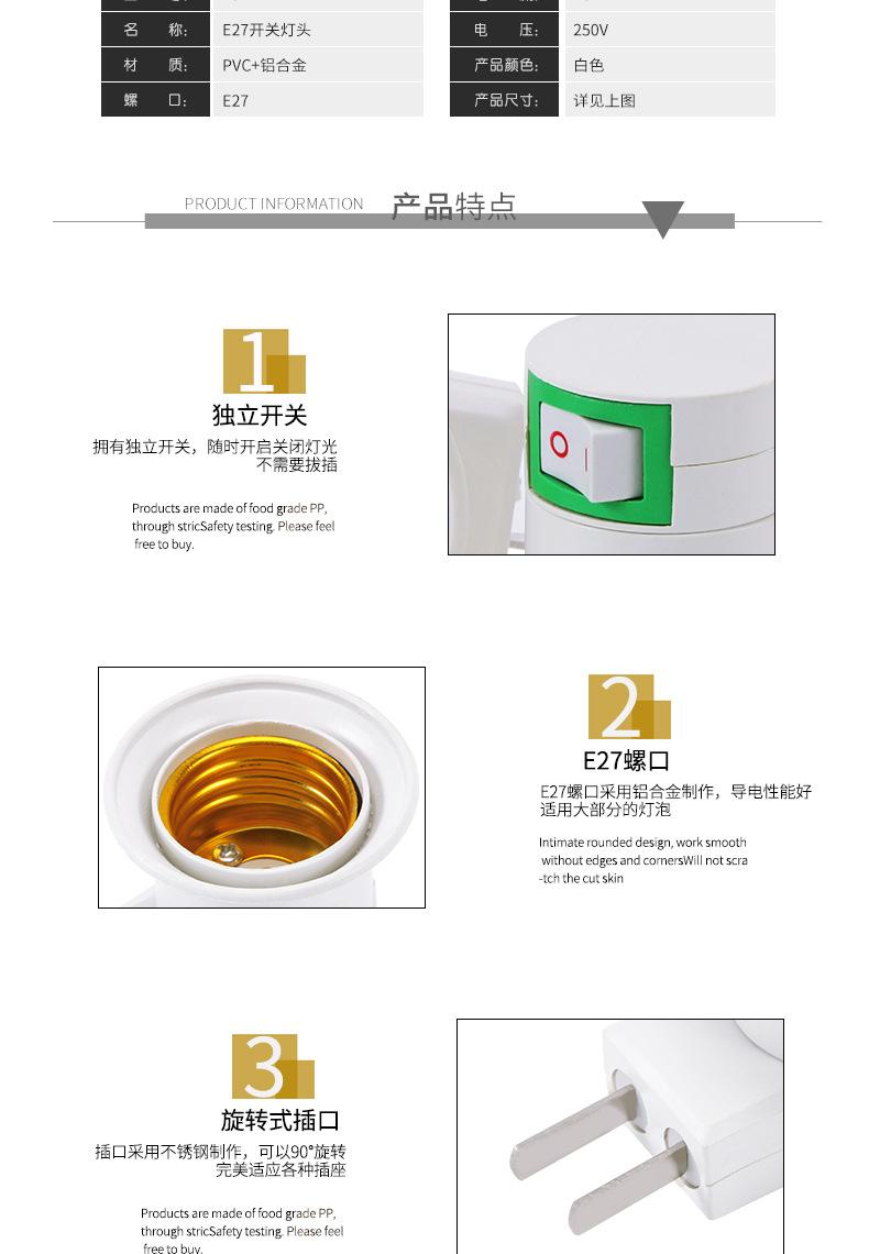 Nome do produto: 102 E27 suporte de interruptor de parafuso para interruptor de parede de luz noturna (rotativo)