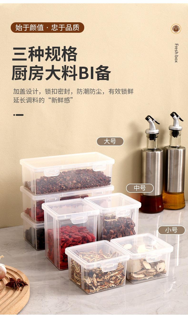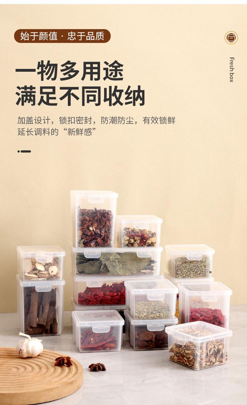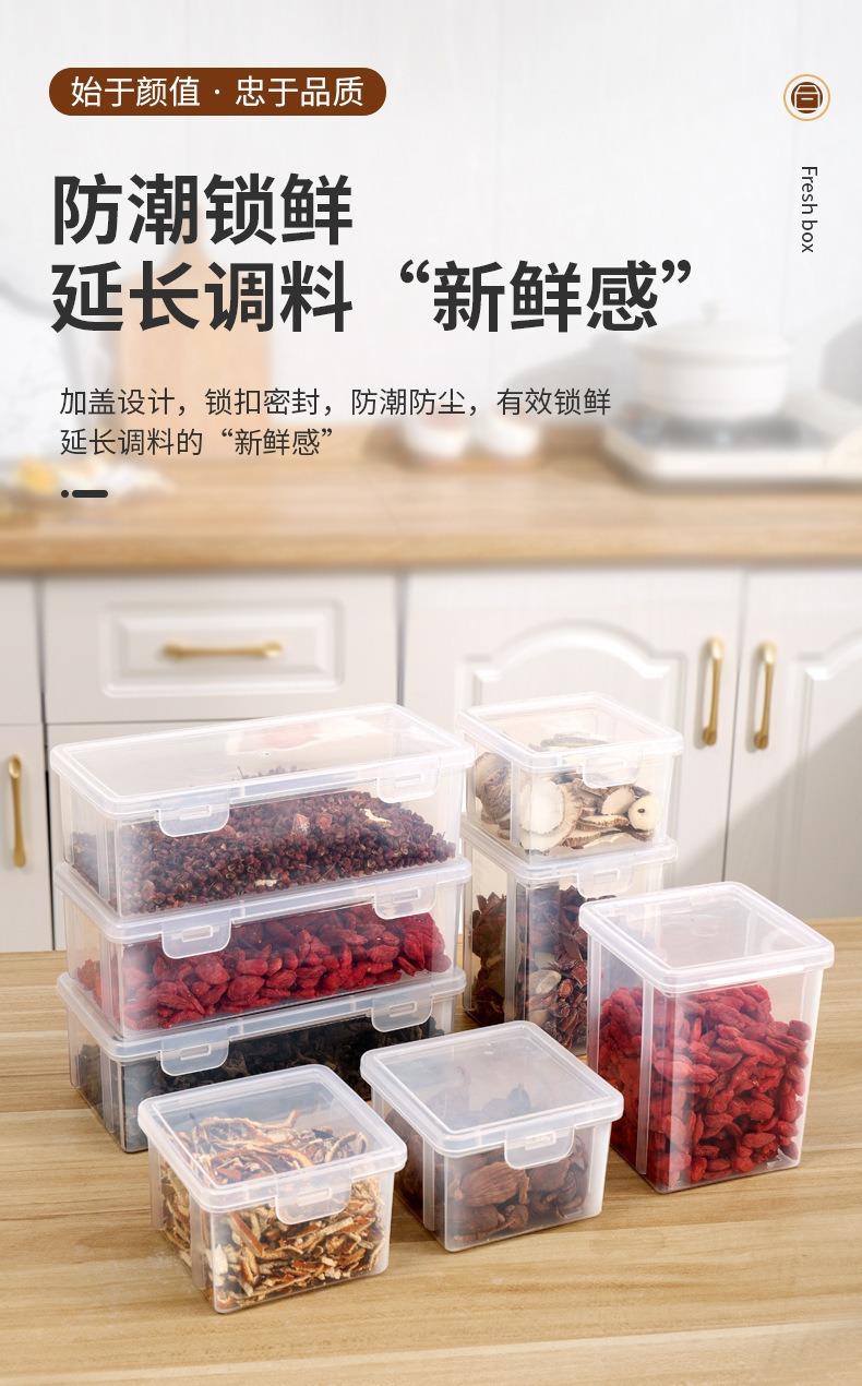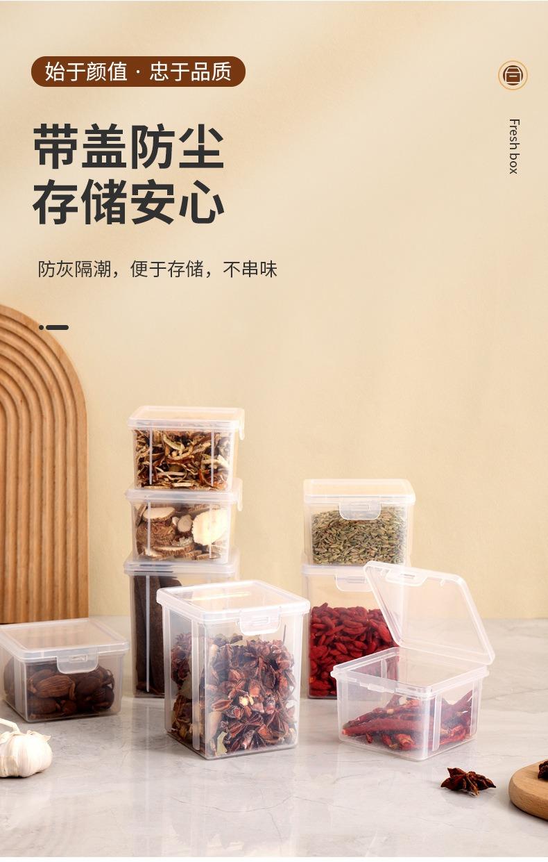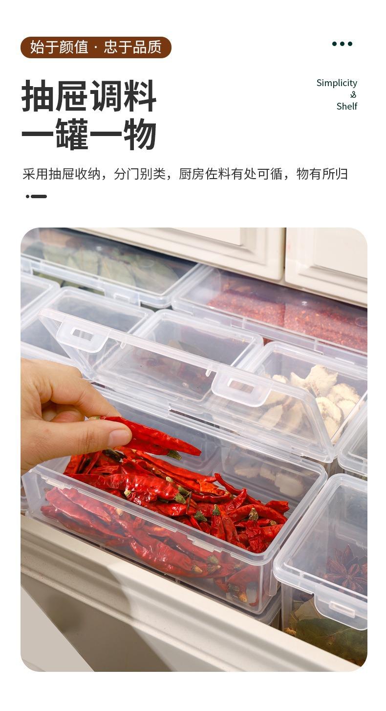 Caixa de armazenamento para subembalagem de especiarias Caixa de especiarias para cozinha Casa Canela octogonal Pimenta seca Compartimento Aba Caixa de armazenamento selada