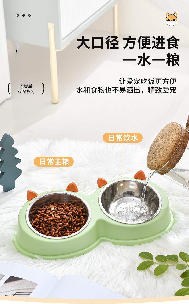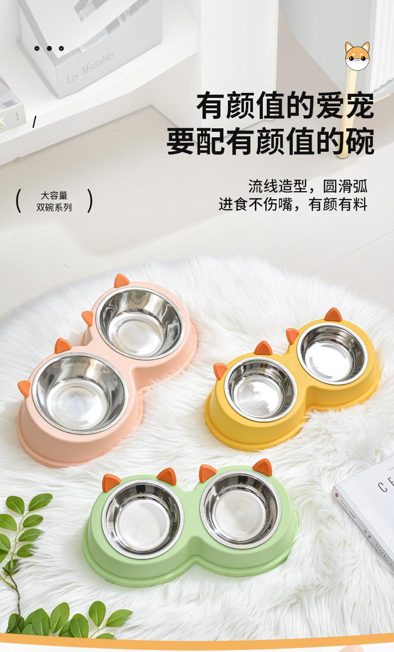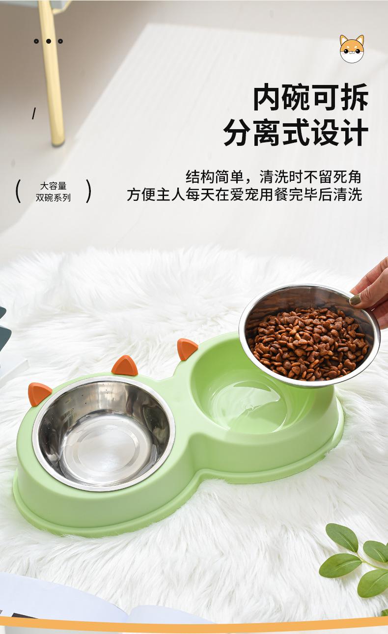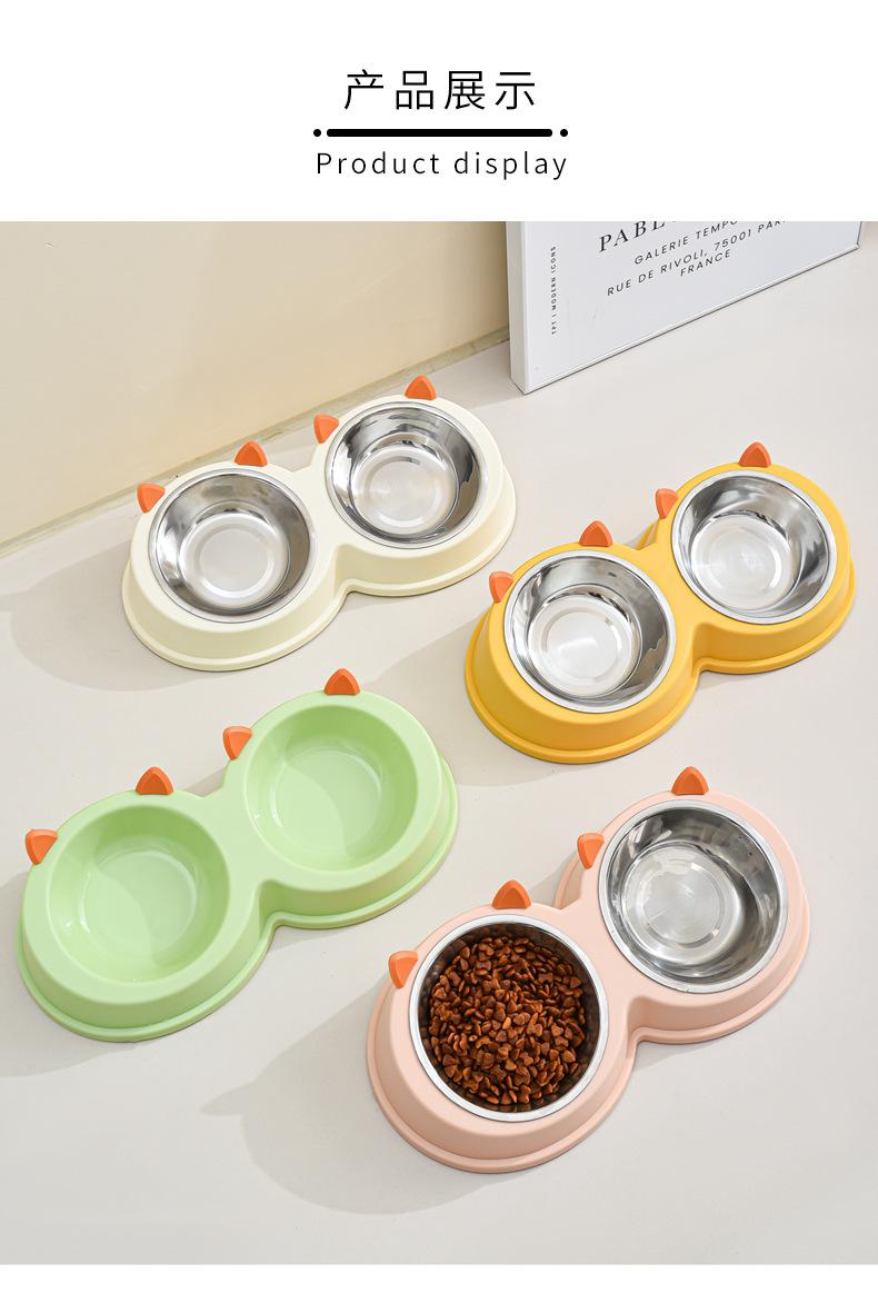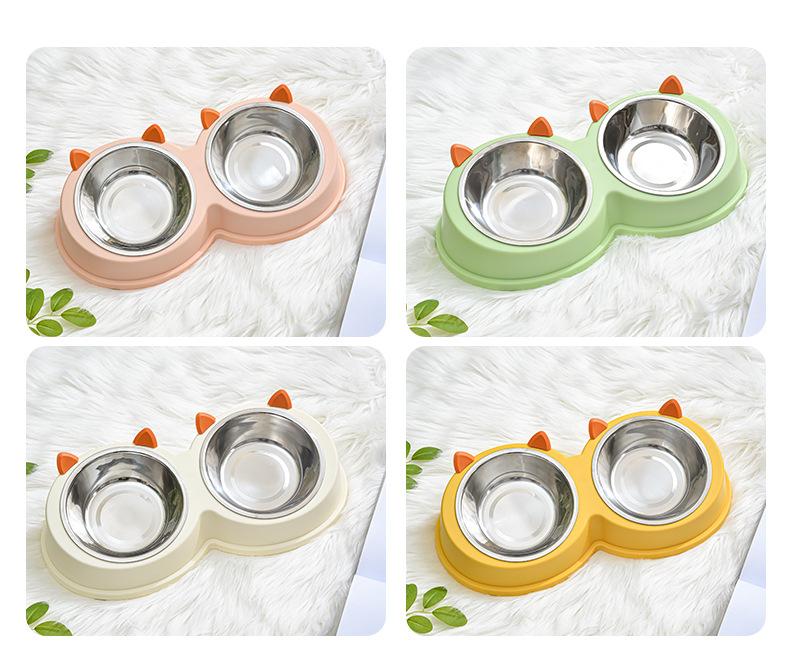 Orelhas de gato aço inoxidável Pet Bowl tigela de cachorro tigela de gato tigela de comida de cachorro tigela de comida de gato cão e gato comendo e bebendo talheres de tigela dupla