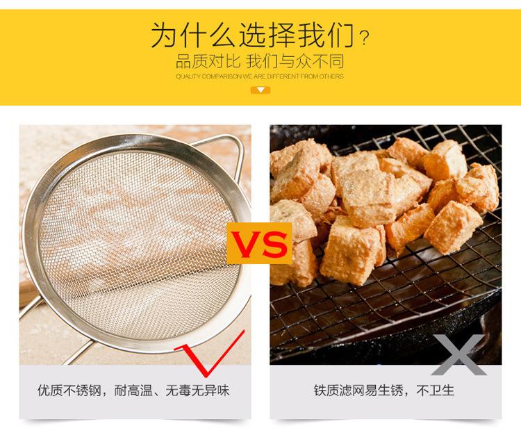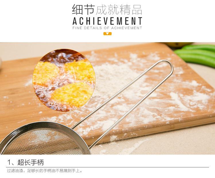 Aba larga de grão reto de óleo de sarja treliça leite de soja Ninho de pássaro filtro peneira 201 aço inoxidável coador colher de óleo de cozinha