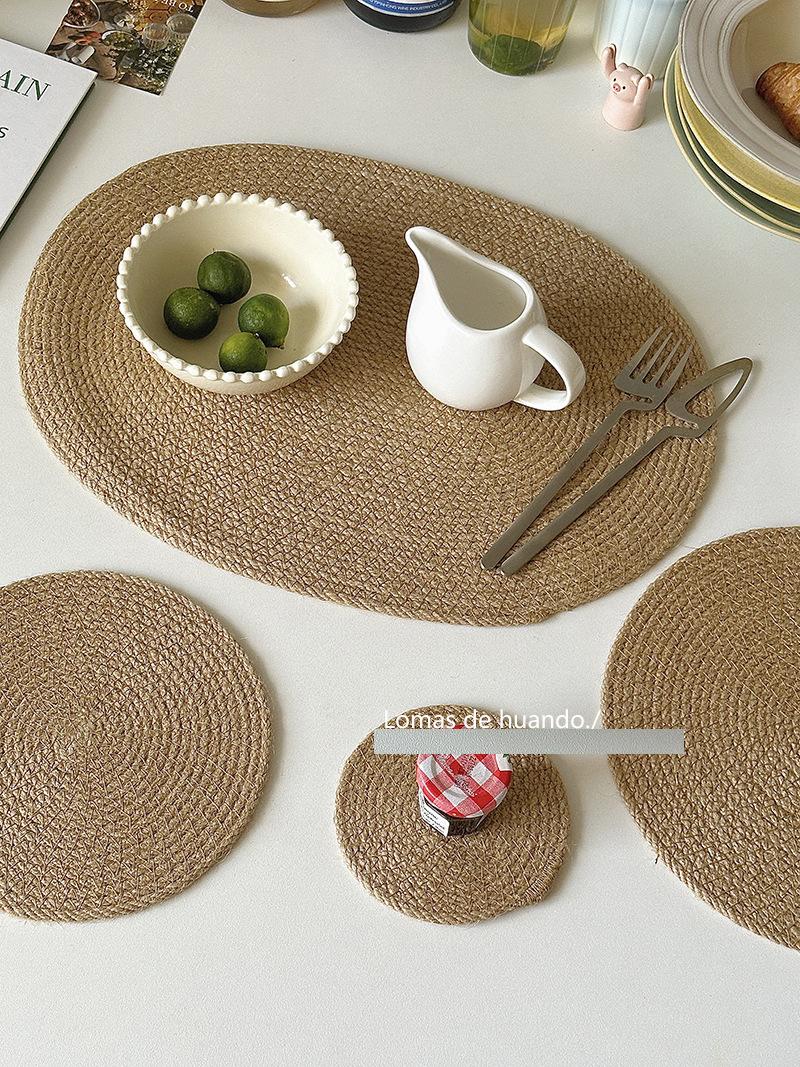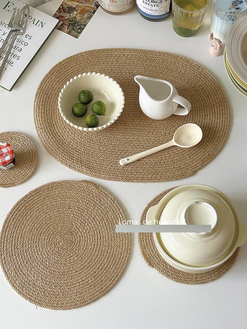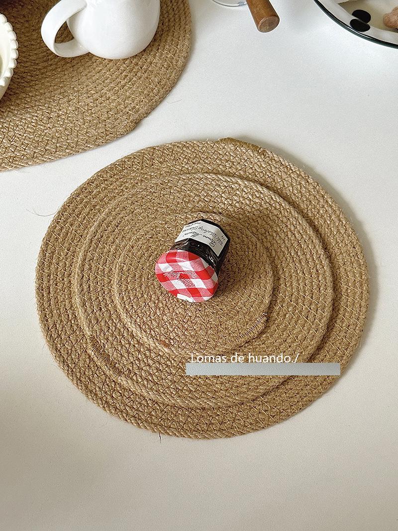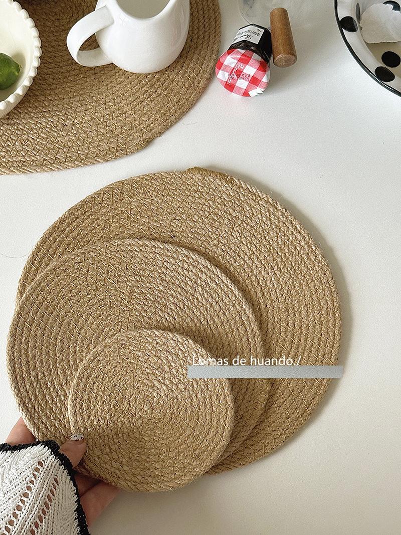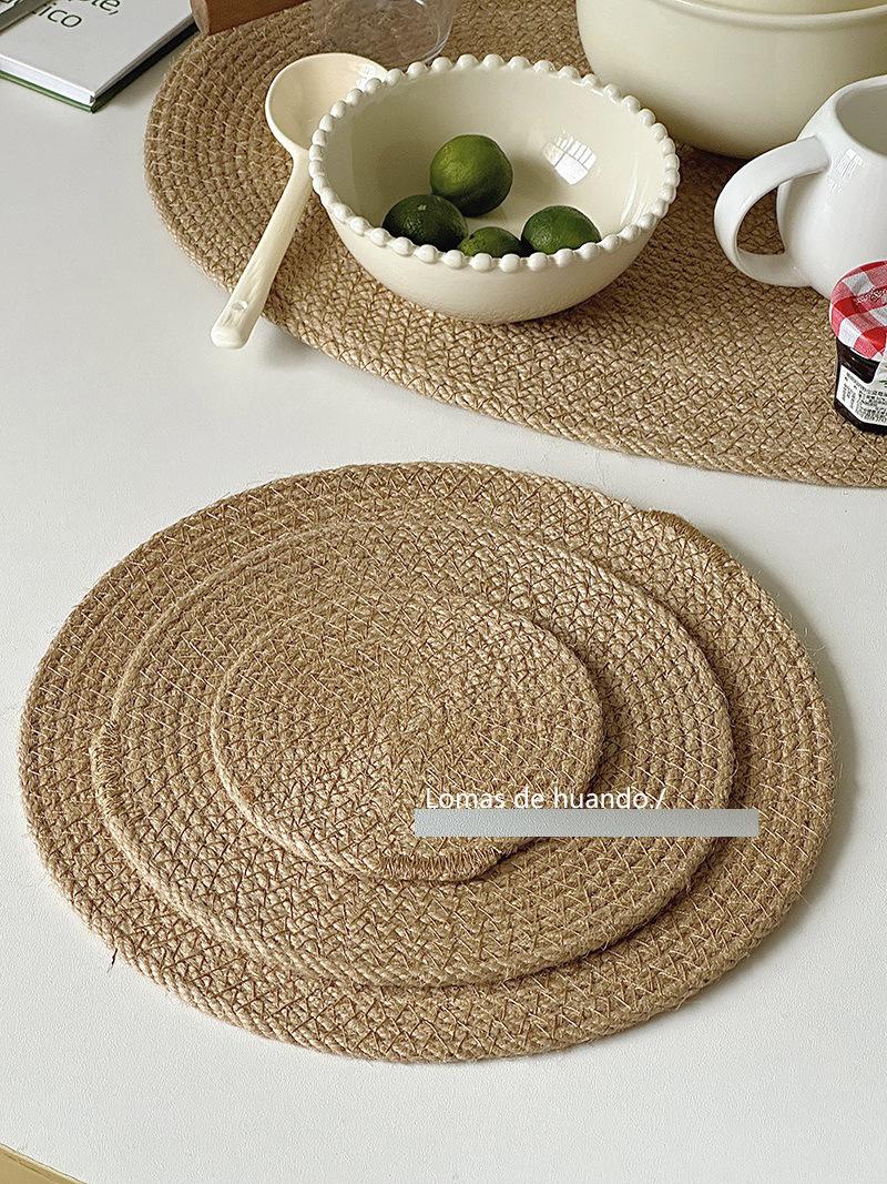 Compre Estilo japonês ins estilo linho tecido placemat mesa esteira isolamento térmico esteira pote esteira tigela esteira tecida redonda coaster bonito para fotos no atacado no Joom.pro