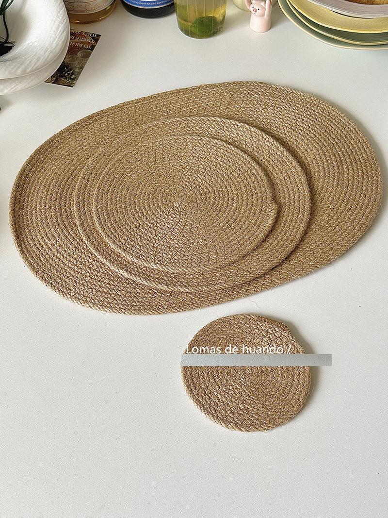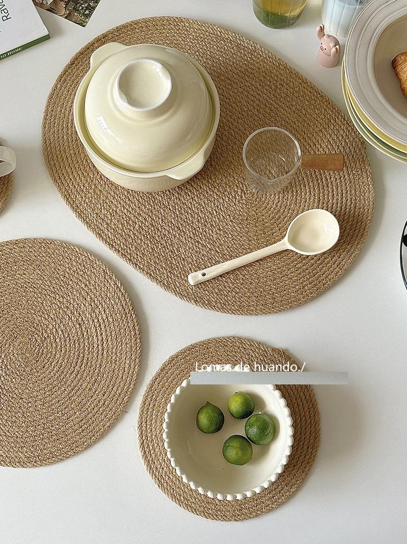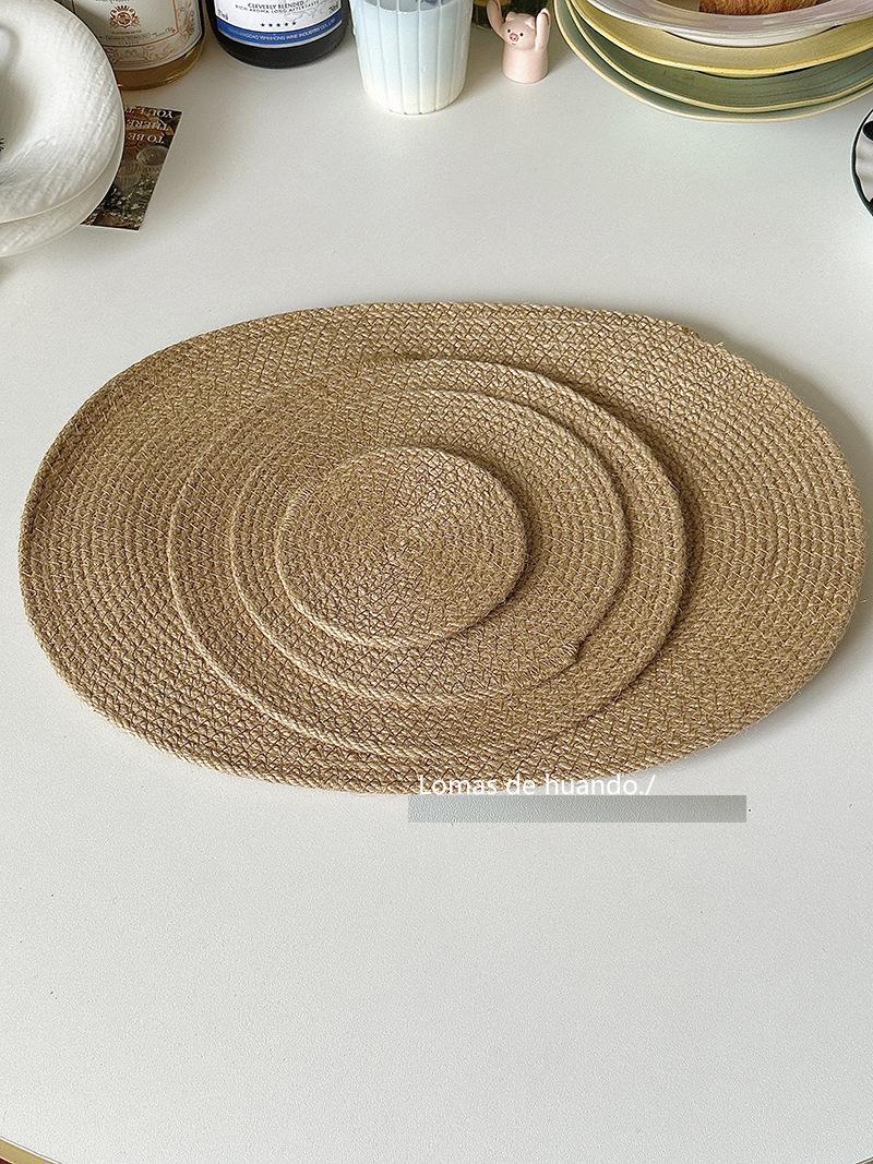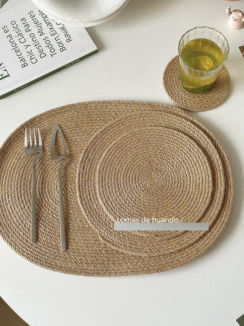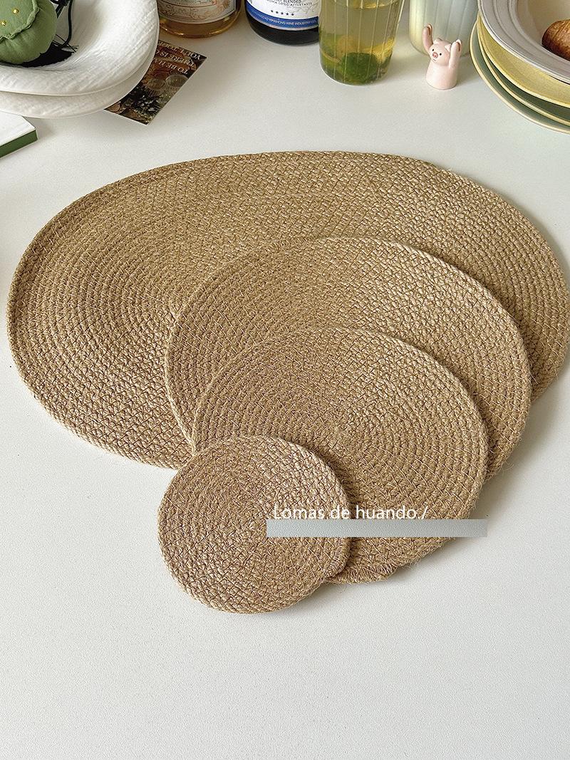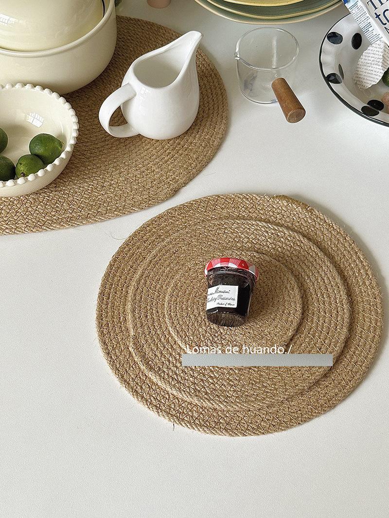 Compre Estilo japonês ins estilo linho tecido placemat mesa esteira isolamento térmico esteira pote esteira tigela esteira tecida redonda coaster bonito para fotos no atacado no Joom.pro