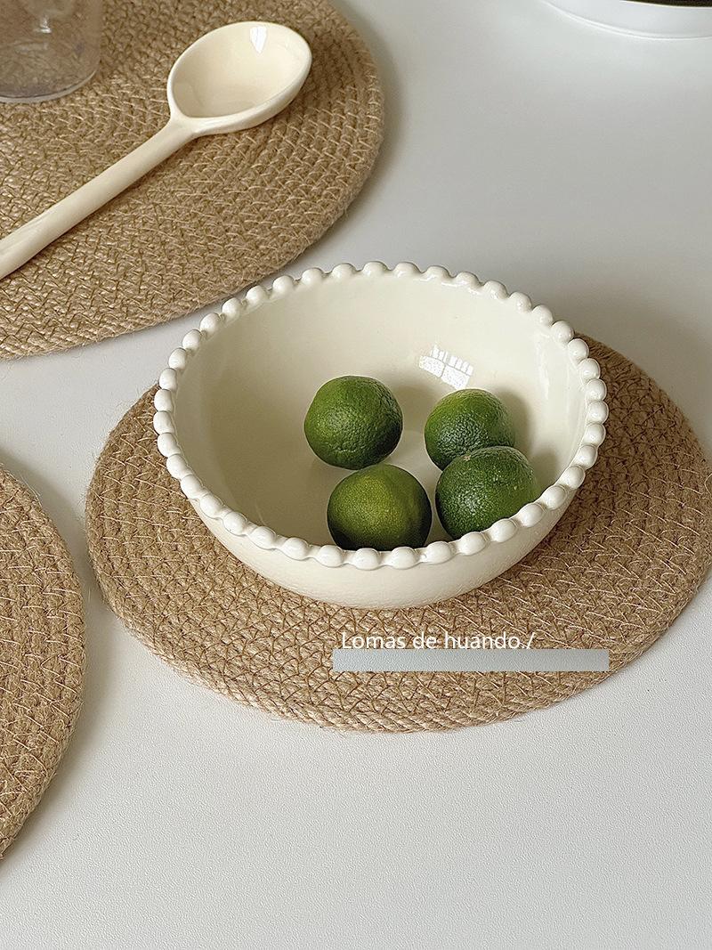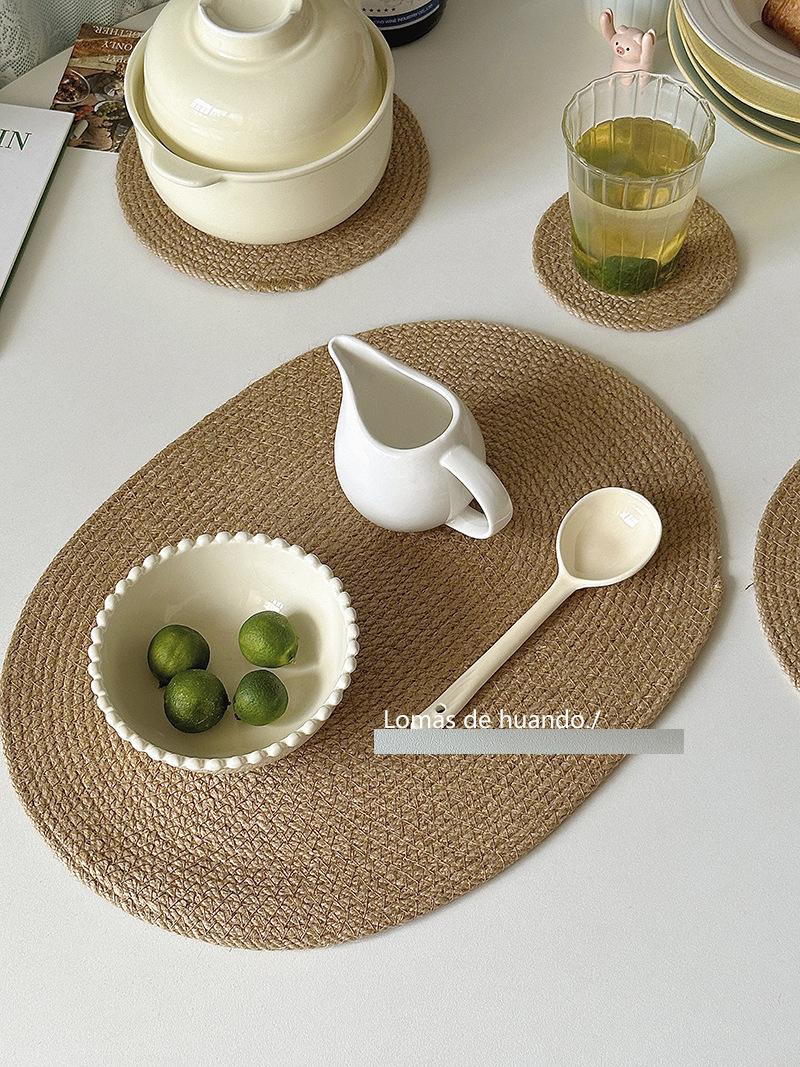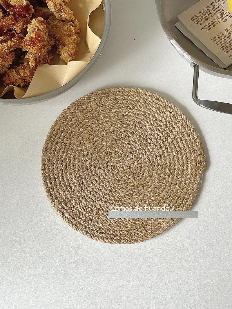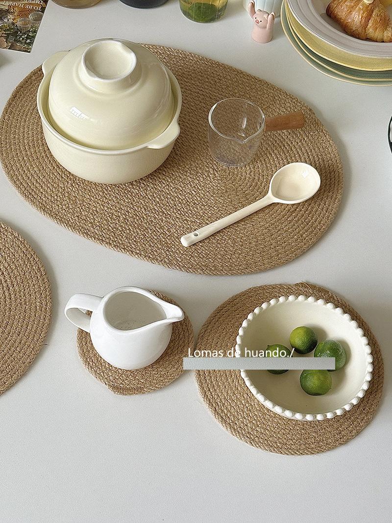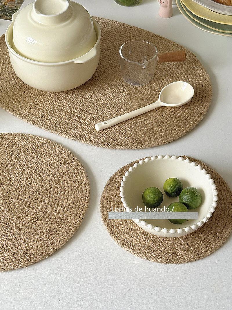 Compre Estilo japonês ins estilo linho tecido placemat mesa esteira isolamento térmico esteira pote esteira tigela esteira tecida redonda coaster bonito para fotos no atacado no Joom.pro