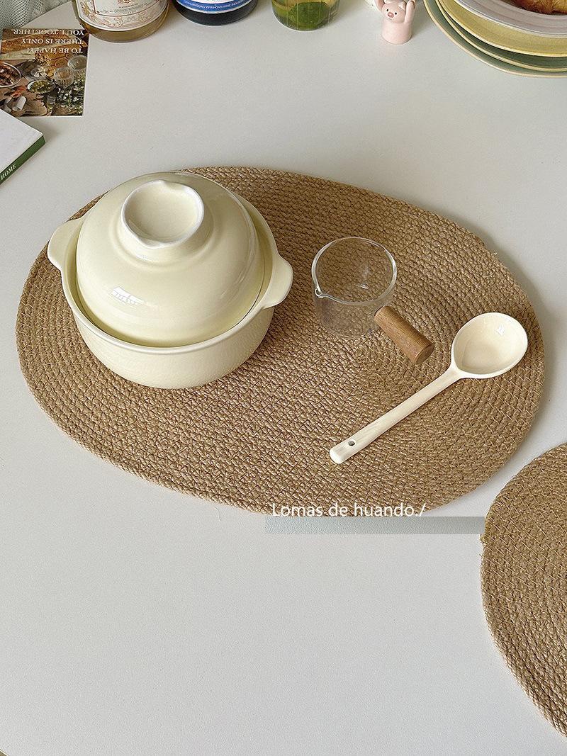 Estilo japonês ins estilo linho tecido placemat mesa esteira isolamento térmico esteira pote esteira tigela esteira tecida redonda coaster bonito para fotos