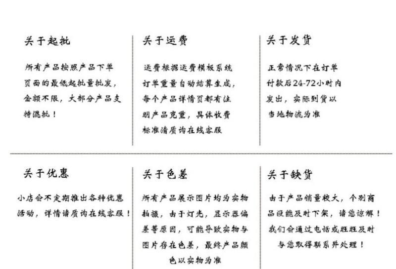 5. Todos os produtos desta loja são vendidos pelo preço real. Por favor, não negocie. Não vá para o ponto decimal. Não crie problemas para nós dois por alguns centavos e perca nosso tempo. Obrigado pela sua cooperação!